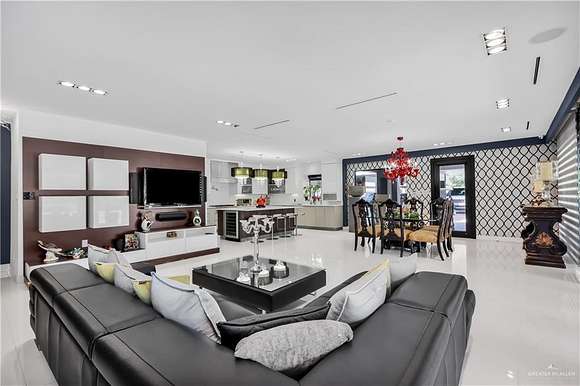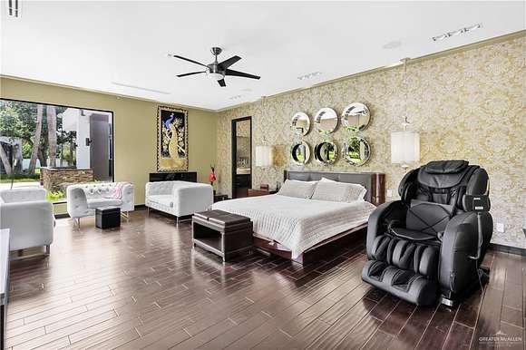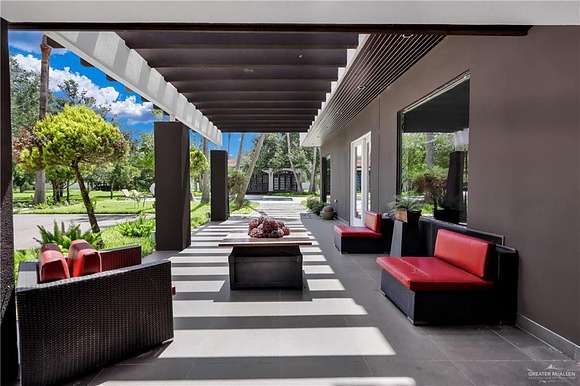 A magnificent 4 bedroom, 6 bath ranch in Alton that is secluded behind gates on 3.6 acres of mature trees and manicured lawns, this 7,628 square foot home is like no other. The open floor plan is inviting and elegant with its beautiful granite flooring and wonderful fixtures. The kitchen has custom cabinetry, a walk-in pantry, quartz countertops and state-of-the-art appliances. The huge master bedrooms has a great view of the pool, a beautiful shower and a walk-in-closet. Relax, enjoy, and entertain outdoors in the pool, covered patio, and outdoor kitchen with grill. Home also includes an indoor fountain, electric shutters, maid's quarters and massage room. A fully equipped gym is located inside the pool house and a separate warehouse is great for storage. Come view this stunning home. Schedule your viewing appointment.