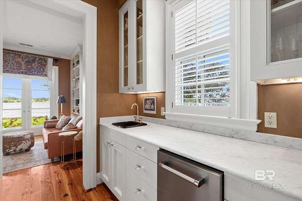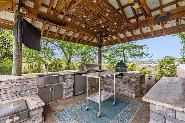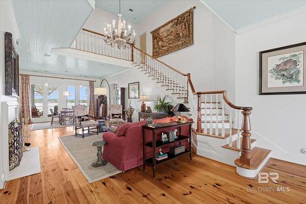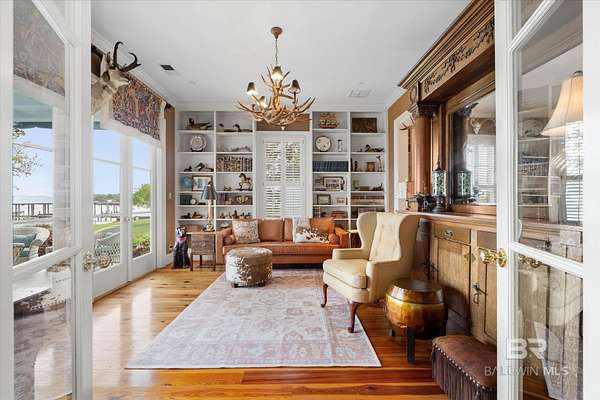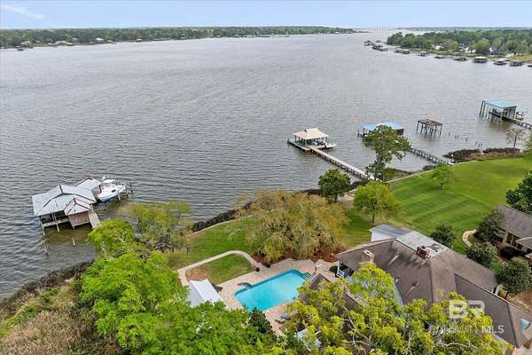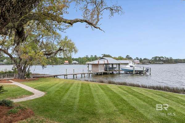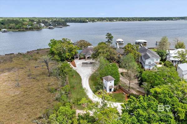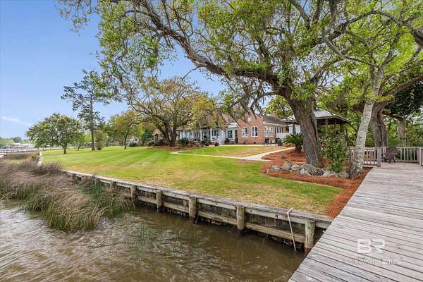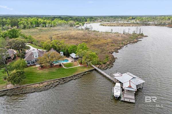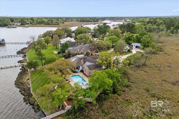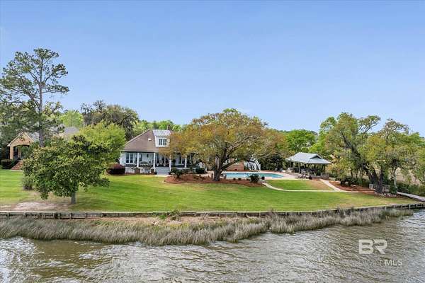 Welcome an extraordinary waterfront location on Dog River—an unparalleled 7.5-acre retreat at the confluence of Dog River, Rabbit Creek, and Halls Mill Creek. Tucked away at the end of Higgins Road, this remarkable 3-bedroom 3 and a 1/2 bath home offers an impressive 1,214± feet of waterfront and breathtaking panoramic views. The setting is truly one-of-a-kind, featuring not only expansive river frontage but also a pristine, privately owned natural wetland teeming with native flora and fauna. Designed by architect Craig Roberts and built by Randy Broadway, this custom home blends timeless design with exceptional livability. At the heart of the home is a living room complete with a fireplace and sweeping water views. The adjacent keeping room, also with a fireplace, flows seamlessly into the beautifully appointed kitchen featuring a large island, high-end appliances & new disposal. A gracious dining room is off the living room. A handsome study overlooking the river includes built-ins, a wet bar, and ample storage. The first-floor primary suite is a retreat, offering a private den, a dedicated office, and a luxurious en-suite bath. Also on the main level are a powder room and a second bedroom with an en-suite bath. Upstairs, a spacious third bedroom suite features a private bath, flanked by an oversized climatized walk-in closet, and a charming flex space. The outdoor spaces are equally impressive. Enjoy a sparkling pool, outdoor kitchen, and an outdoor bath The private boat dock includes three lifts and storage. Additional features include a pigeonnier—perfect for a creative escape—a workshop with two garage bays, a single attached carport bulkhead, gas lanterns and generator. This is more than a home, it’s a lifestyle. A rare opportunity to own a legacy waterfront property! Property is part of an estate and is being sold as is where is with no warranties expressed or implied and no repairs being made by the Seller. Buyer to verify all information during due diligen