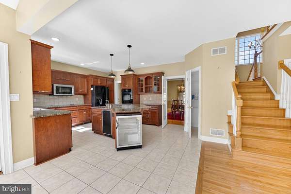 - Breakfast Area, Ceiling Fan(s), Central Vacuum, Chair Railings, Combination Kitchen/Dining, Crown Moldings, Dining Area, Double/Dual Staircase, Eat-In Kitchen, Entry Level Bedroom, Family Room Off Kitchen, Formal/Separate Dining Room, Island Kitchen, Jetted Tub Bathroom, Pantry, Primary Bath(s), Recessed Lighting, Stall Shower Bathroom, Tub Shower Bathroom, Upgraded Countertops, Walk-In Shower Bathroom, Window Treatments