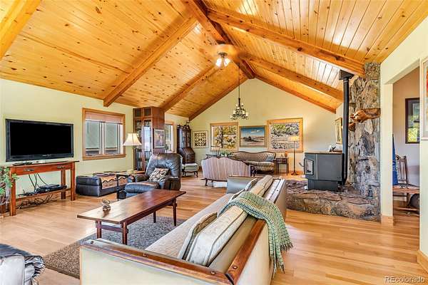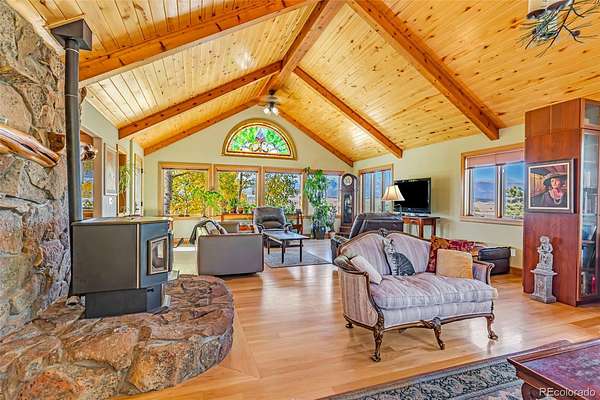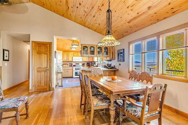 The main-level primary suite features direct access to an elevated deck, the perfect place to enjoy your morning coffee while watching the sunrise over the mountains. Built on a permanent foundation, this Westcliffe Craftsman home blends timeless style with modern convenience. A cozy pellet stove warms the inviting living area, adding comfort and charm to chilly Colorado evenings.