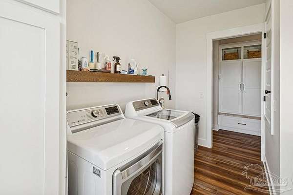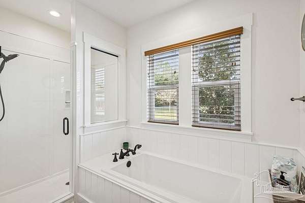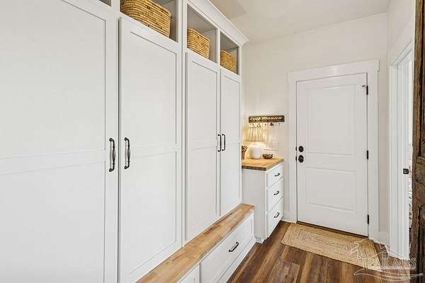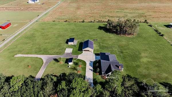 Beautifully designed home on 5 scenic acres surrounded by high-end estates. Ideally located just 5 minutes to Five Points and 20 minutes to Pensacola, this property features 2,263 sq ft of well-planned living space, a 30x50 insulated red-iron workshop, and quality finishes throughout. Interior highlights include LVP flooring, a wood-burning fireplace, and soft-close cabinetry paired with leathered Dolomite countertops and Big Chill appliances, including a gas range. The kitchen offers a tile backsplash, built-in pantry shelving with a charming screen door, and a separate mudroom entry with beautiful built-ins. The primary suite includes a walk-in closet with built-ins, a drop-in tub, and a marble walk-in shower. Additional bedrooms feature a 1 bedroom w a private en-suite and 2 additional bedrooms sharing a hallway bath with dual sinks and hallway linen storage. Additional features include: o Whole-home air purifier integrated into HVAC o Spray-foam insulation o Two 50-gallon electric water heaters o Screened back porch with dual exterior doors & transoms o Spacious laundry room with Charles Phillips barn doors o Well with pH neutralizer and filtration system Exterior amenities include a 30x50 engineered red-iron shop (25x30 enclosed + 25x30 carport) with concrete flooring, RV hookup (50 amp), generator switch, concrete drive, gutters, irrigation, wet-weather pond, and fencing. 3500 Red Ryder Lane offers the perfect balance of luxury, privacy, and convenience in a highly desirable Northwest Florida setting.