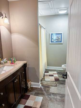 The finished walkout basement includes its own attached garage, a separate bedroom, two full bathrooms, a fireplace, and a kitchenette--ideal for a guest suite or in-law living.
