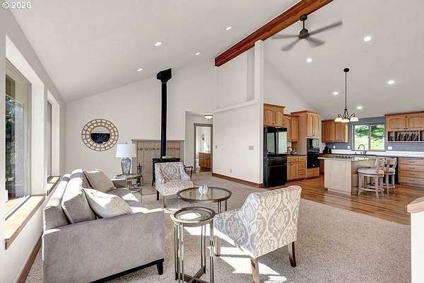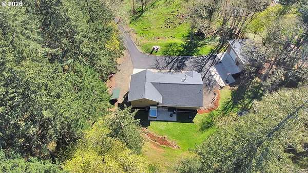 Private 4.71-acre retreat just 7 minutes to I-5, offering an easy drive to Eugene/Springfield, Albany, and Salem.Set against sweeping valley views, this custom home delivers the space and privacy buyers are looking for-without sacrificing everyday convenience. Whether commuting to RiverBend, splitting time between Eugene and Albany, or simply wanting room to breathe, this location supports real life.Built in 2011, the home offers over 2,600 square feet with a versatile split-level layout designed for flexibility. The 3-bedroom, 3-bath floor plan includes multiple living areas, making it well-suited for multi-generational living, guest space, or separation of living and work-from-home needs. Vaulted ceilings and expansive windows bring in natural light while framing the surrounding landscape.The upper deck is positioned to capture the views and sunsets, while the private hot tub area provides a quiet, tucked-away outdoor space. A mix of open and wooded surroundings offers both usable outdoor space and natural privacy.Designed with function in mind, the property includes a 30x24 shop with 220 power, RV parking, and a paved driveway for ease of access. The 3-car garage configuration features an attached 2-car garage plus a separate single bay-currently used as a workout and flex space.The lower level adds flexibility with a separate exterior entrance and a spacious bonus room originally designed as a theater room. While not a legal bedroom, it offers valuable additional living or guest space.Additional features include a heat pump with central air, private well and septic, and forest tax deferral that helps reduce overall property taxes.A rare opportunity to find privacy, views, and acreage in a location that remains connected and practical.Seller is a licensed real estate broker in the State of Oregon.