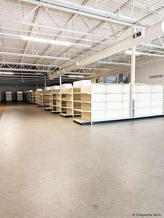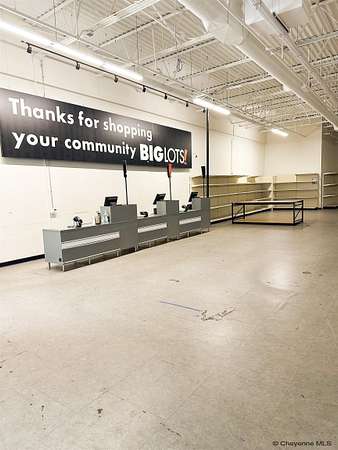 Est $30,656/moAn excellent opportunity to purchase an incredible building in a superior location. Situated adjacent to the Cheyenne Plaza Shopping Center, this property is surrounded by major retailers; Auto Zone, Sportsman's Warehouse, Murdochs to name a few. The building consists of two units. One unit of approximately 25,000 sq ft is occupied by Cheyenne's only trampoline center. The second unit, formerly occupied by Big Lots, consists of approximately 25,000 sq ft of retail and 10,000 sq ft of warehouse. The warehouse boasts dock high doors, a seldom found amenity in the Cheyenne market. Owner may consider leasing the 35,000 sq ft to a well qualified user.