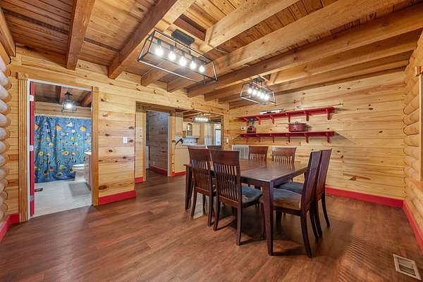 Welcome to your dream retreat, equipped with a sauna and hot tub! Nestled on 5.38 fully fenced acres, this stunning 4-bedroom, 2-bathroom log cabin offers the perfect blend of privacy, natural beauty, and comfortable living. With 2,110 sq ft of thoughtfully designed space, this home is ideal for those seeking a peaceful country lifestyle without sacrificing modern convenience.