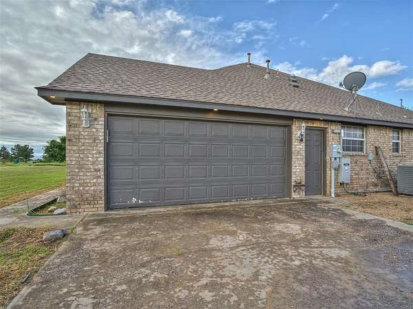 5 acres with tons of potential on the West side of Yukon! This property offers 4 true bedrooms, 3 full bathrooms and a flex space that could be used as 5th bedroom, home office, or storage. There is an attached 2 car garage with a storm shelter in the floor! As you enter the home you will be welcomed with a true foyer, which leads you to the formal dining room and open living area + kitchen! The kitchen is finished with custom cabinets, granite counters and stainless steel appliances. The kitchen also offers a true walk in pantry. There is a breakfast nook off the kitchen, which opens up to the living area. The living area is large and offers tall ceilings to give you an open feeling. Many will appreciate the primary and secondary bedrooms are separate from each other. Each of the 3 secondary bedrooms are large and offer plenty of closet space. There is also a full bath near these bedrooms to provide ease of access! The bathroom has a custom vanity, granite counters and tile shower surround. Many will find the flex space to be usable in some form as well. The primary suite will only wow you! Access to the backyard vaulted ceilings and access to ensuite bathroom. The ensuite bathroom offers double vanities, jetted tub, walk in shower and multiple closets. There is a whole home generator.