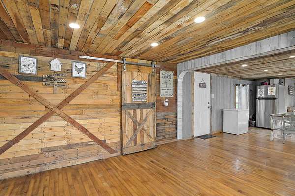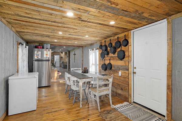 Fantastic four bedroom one and 1/2 bath home. Over 2000 ft.. Fantastic family room with a wood-burning stove. Built in China Hutch. Loft makes a great storage area or an extra bedroom. Large bathroom with a walk-in shower and a big walk-in closet. One bedroom is nonconforming/no closet. Master bedroom is nonconforming with no closet. But it does have a half bath. Air-conditioning is two window units and they stay with the property. 6 inch walls, Very nice metal shop. Is 22 x 36. fruit trees, peach and apple. Also some blackberry bushes .Fixed up nice for a Hobby Farm. Hogs, Chickens, Goats ,Horses etc.. Fenced in back yard. A small greenhouse. And also a large outbuilding that they use for storage and a chicken coop. All this on one and a half acres. Miller schools. Easy access to Joplin.
