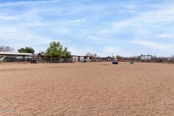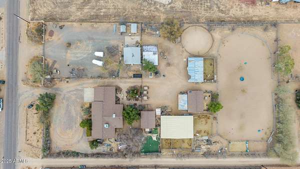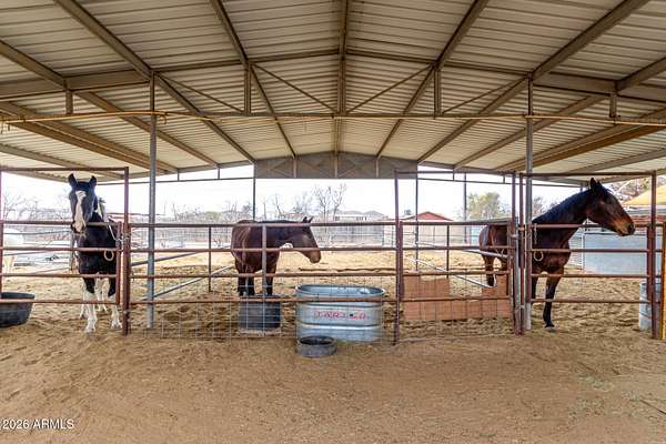 Prime Desert Hills 2-acre horse property with flat, usable land, quality dirt work, and no washes. Convenient access to Carefree Hwy and I-17. Equestrian setup includes a 20x60 turnout pen, 4-stall mare motel with favorable exposure, riding arena, 3-stall port-a-stall, tack and feed barn, plus multiple outbuildings. Additional features include a two-car Tuff Shed and wash station with hot water. Property currently accommodates a variety of animals and offers flexibility for updates or future plans. Ideal opportunity to enhance existing improvements or build a custom home in a highly accessible location.