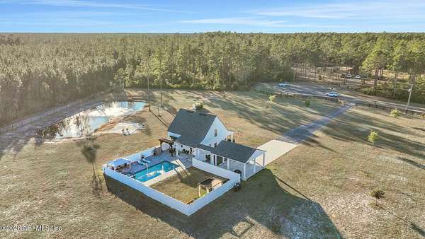 This 2019-built home is a rare find. Sitting on just over 5 cleared, usable acres with the space and privacy you've been looking for. Enjoy room for dirt bikes, 4-wheelers, boats, and outdoor hobbies, plus a 3-car shop/garage and an additional shed perfect for storage, gardening, or a home office conversion. Out back, you'll love the fully fenced-in pool with hot tub and multiple lounging areas, creating the perfect setup for entertaining or relaxing at home. The property also features a 0.5-acre fully stocked pond with bass and bluegill and a fountain on a timer (pond levels may be lower seasonally). Inside, the home offers an open-concept kitchen and main living area, a primary suite on the first floor, a spacious laundry room, and an impressive amount of storage throughout, including built-in shelving in every closet. The primary bathroom includes double vanities, a walk-in shower, and a clawfoot tub! Upstairs features two additional bedrooms, a loft, and a bonus room ideal for a home office, craft room, or flex space. Located in Tupelo Plantation, a unique equestrian and preservation community spanning 1,454 acres of carefully preserved forest, with a community lake house available to rent for events and gatherings. Don't miss the opportunity to own a one-of-a-kind property that combines space, recreation, and tranquility.