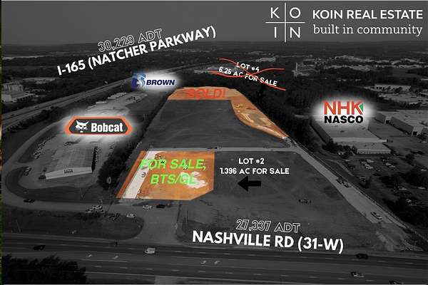 Evergreen Commons on Nashville Rd has one remaining outparcel FOR SALE. Lot 2 (1.396 acres) is For Sale, Build-to-Suit, or Ground Lease. Lots 2 has been graded and with all roads, infrastructure, storm water, force main, and utilities to the property line. This Lot is adjacent to the recently announced WAWA C store! Current zoning is Highway Business, allowing for many different options. Call Andy to discuss.