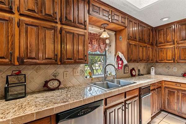 PRICE REDUCED! SPACIOUS HOME ON 4.5 ACRES OUTSIDE THE CITY LIMITS WITH POSSIBLE COMMERCIAL POTENTIAL! This beautiful home has 3 bedrooms and 3 full baths! The main living area has a wood burning fireplace, vaulted ceilings, and wet bar. There is an additional large living area, 2 dining areas, and an office or small TV room. There are granite tile countertops in the kitchen as well as stainless appliances, and granite countertops in the master bath. There is a large paved driveway, an attached 2 car garage, plus 3 more garage spaces which can also be used as workshops or storage facilities. The property is fully fenced with an automatic gate entrance, has no city taxes, and is located close to I20 for convenience! Potential for a cabinet shop, storage of business equipment, or various other uses! NEW ROOF coming soon! The home has both a well and city water, as well as a sprinkler system near the house. Buyer to verify commercial potential with county officials.