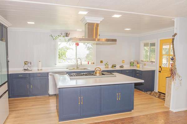 Perched on nearly 5 acres just minutes from HWY 180, this beautifully updated 3-bedroom, 2-bathroom MF home offers the perfect blend of modern convenience and serene mountain living. Pass through the automatic gate and follow the pull through paved driveway to discover expansive skies and magnificent Sierra mountain views. Inside, the open floor plan is anchored by vaulted ceilings and a cozy wood stove, creating an atmosphere that is both spacious and inviting. The heart of the home is a true chef's kitchen, featuring a premium Forno range, soft-close cabinetry, recessed LED lighting, and ample counter space for culinary projects. Much of the interior is enhanced by durable laminate flooring and energy-efficient double-pane windows for year-round comfort. Step outside onto the expansive decking to soak in the fresh air and stunning vistas, or explore the rich garden area complete with raised beds, established plantings, and assorted fruit trees. The property is fully fenced & cross fenced, making it ideal for pets & livestock. Additional highlights include a large 2-bay shop for hobbies and a 14kw backup generator with transfer switch for total peace of mind. Make your appointment to see this mountain gem today!