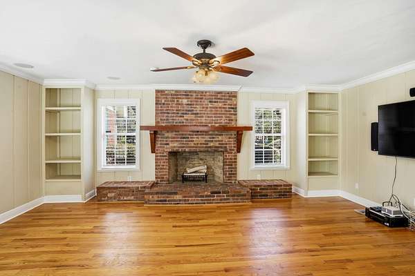 One or more photo(s) has been virtually staged. Want the space and privacy of country living without leaving town? This is the home for you. Set on two acres, with a new 2026 roof, the home is located at the end of a private road but is within walking distance of the Market Street area. While the home has a built-in two car garage, the property also features a detached office with an additional two-car garage with attic storage and a detached carport. Additional features on the property include a playhouse and swing set, a tree fort, a fire pit with real natural stone seating, a 16x16 shed, and lots of yard space! While the outdoor amenities are impressive, the interior is just as compelling. This versatile 4BR/4BA home offers thoughtful updates throughout, including a formal family room and a fully updated formal dining room with shiplap and modern fixtures. The eat-in kitchen features bar seating, updated countertops, newer appliances, and a spacious pantry, flowing seamlessly into the large living room with built-ins, hardwood floors, and a cozy wood-burning fireplace. Upstairs, the primary suite includes his-and-hers closets and a fully updated bath with soaking tub and dual-head walk-in shower. Two additional upstairs bedrooms are generously sized with large closets. A private guest bedroom with full bath is located downstairs and could easily serve as a home office. A large mudroom with custom built-in shelving and lockers adds everyday functionality, and a safe is included with the sale. Outdoors, enjoy a lush setting with mature live oaks, best appreciated from the screened-in porch or patio. A rare opportunity to enjoy space, privacy, and flexibility-all in a convenient in-town location.