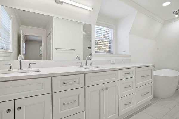 - Entrance Foyer, Garden Tub Roman Tub, Pantry, Split Bedrooms, Stall Shower, Upper Level Primary, Walk In Closets