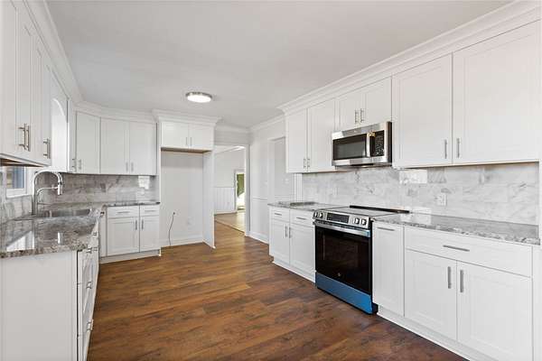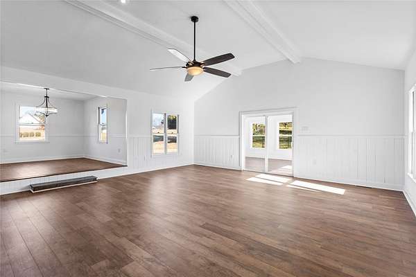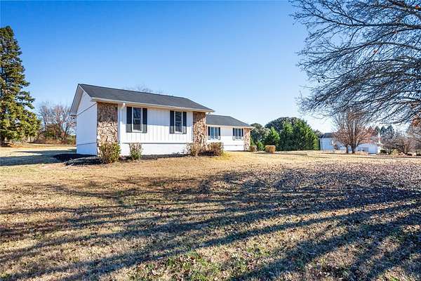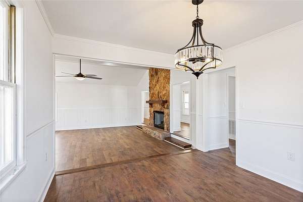 You will love this all one level home on almost 2 acres of land! This charming 3-bedroom, 2.5-bath home offers a bright, comfortable layout with fresh updates throughout. The main living space features a cozy stone fireplace, vaulted ceilings, and warm wood-style flooring that flows into the dining area and kitchen. Home features a large sunroom that makes the home feel so large and spacious. The kitchen has been fully remodeled with clean white cabinets, modern countertops, and stainless steel appliances, offering plenty of space for everyday cooking. The bedrooms are well sized, the bathrooms are new and the overall floor plan feels open and functional. With inviting curb appeal and move-in ready condition, this home is easy to love and easy to live in.