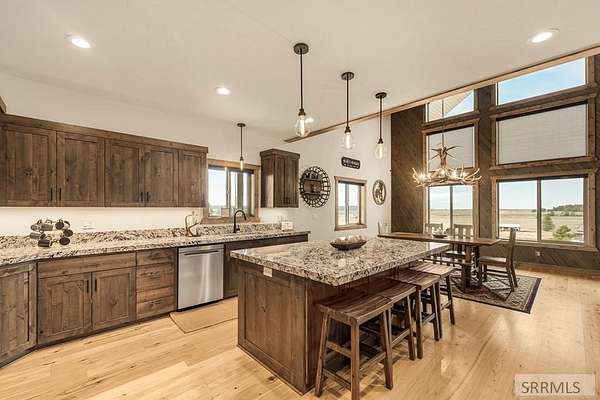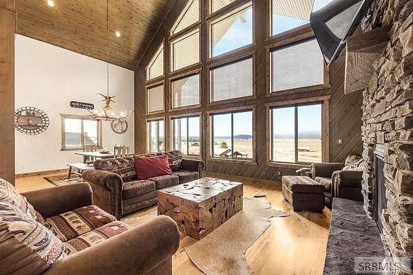 Welcome to your mountain retreat! Built in 2022, this stunning cabin blends luxury, comfort, and panoramic views of Idaho's great outdoors. Designed for year-round enjoyment, the low-maintenance exterior and expansive wraparound covered porch are perfect for relaxing in the hot tub, hosting a BBQ, or simply taking in the views. Inside, soaring ceilings and a grand stone fireplace highlight the open-concept living area, while the gourmet kitchen features granite countertops, high-end appliances, and power blinds. The main-level master suite offers a spa-inspired bath with a dual-head tile shower, and the loft provides additional gathering space plus three bedrooms and two full baths, including a second master suite. Thoughtfully designed with premium finishes, this fully furnished home comes complete with tasteful dcor and modern comforts. Set on 1.59 acres, it includes a newly built 24x40 shop with a 14' door and a freshly improved road for easy year-round access. With its short-term rental permit in place and a proven history as a successful vacation rental, this mountain haven is ready to be your private getaway or income-producing investment.