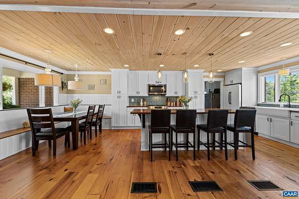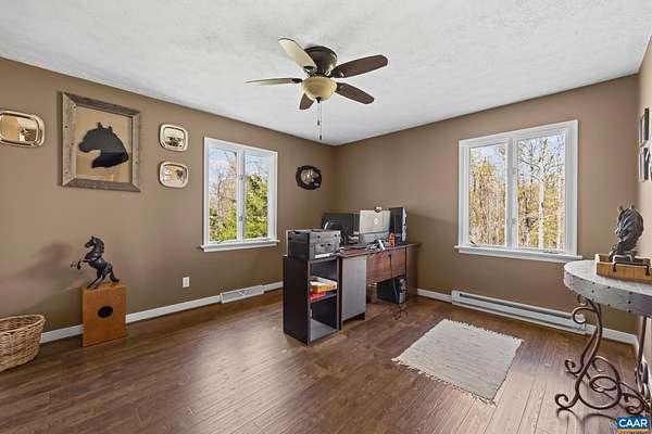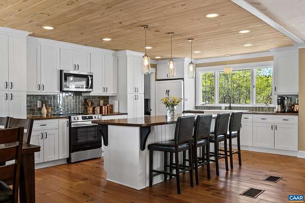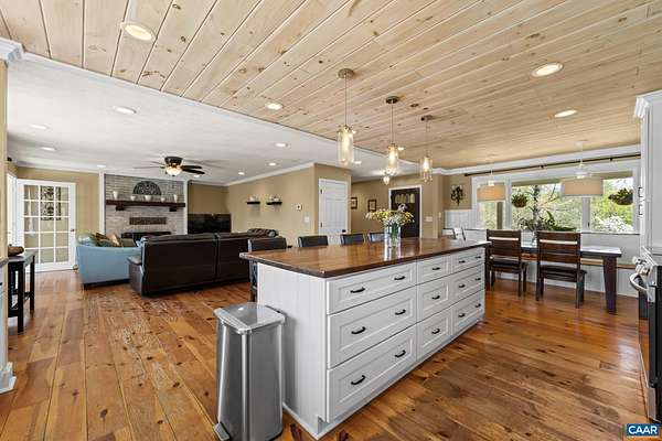 Beautifully renovated Hobby Farm ranch-style home blending charm and modern updates just minutes from Charlottesville, UVA, NGIC, and major commuter routes. The custom kitchen features white cabinetry, farmhouse sink, built-in seating, designer lighting, and a stunning shiplap ceiling. Craftsman-style finishes throughout add warmth and character. Main-level bedrooms are generously sized, offering comfortable and flexible living space. The finished lower level includes a bedroom with a full bath—ideal for guests or an in-law suite. Wood-burning fireplaces on both levels create a cozy atmosphere. Set on a picturesque lot with a dedicated vegetable garden area, approximately 1 acre of electric fencing—perfect for dogs—and equestrian features including a 2-horse stall. Additional sheds provide excellent storage. A rare opportunity to enjoy privacy, functionality, and convenience all in one property!