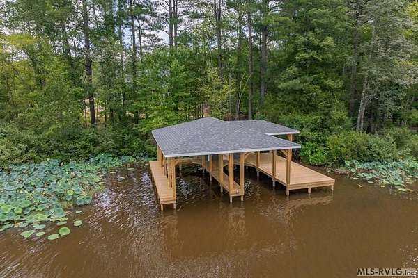 A rare opportunity to own a newly built custom lake home on the tranquil shores of Lake Gaston. Thoughtfully designed with comfort, style, and functionality in mind, this home offers the ideal layout for both full-time living and relaxing weekend getaways. The main level features two spacious bedrooms and full bathrooms, including a primary suite with a perfectly designed ensuite bath. Enjoy a stunning emerald green tiled shower with frameless glass doors and a glass water closet door that allows natural light to fill the space. Upstairs, you'll find two additional large bedrooms and a full bath--perfect for guests or family. Step outside to a 256 sq ft covered back deck overlooking the lake. The covered front porch offers pretty views of your private 4-acre oasis, making it the perfect spot to unwind and connect with nature. Notable features include: Granite countertops throughout, with a full granite backsplash in the kitchen, a large island with seating for six, a lakeside laundry room with built-in cabinetry and versatile countertop space--perfect for a coffee bar, desk, or folding station, wide plank flooring and custom built-ins flanking a shiplap-accented fireplace, durable hardiplank siding, and a main-level secondary bedroom for added convenience. Just steps from the back deck, your lakeside adventure begins. A brand-new double boathouse with a storage shed is ready to accommodate two boats. The long drive (with shared maintenance!) sets the tone for peace and seclusion--offering a gentle escape from the everyday hustle, and a scenic walk to Birdsong Road. Goose Creek is situated on the shores of Songbird Creek, just minutes to the big main lake waters/waterfront dining and marina. Empower internet available. Low annual HOA dues.