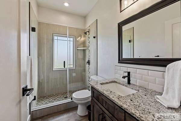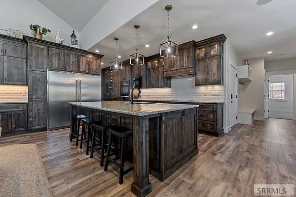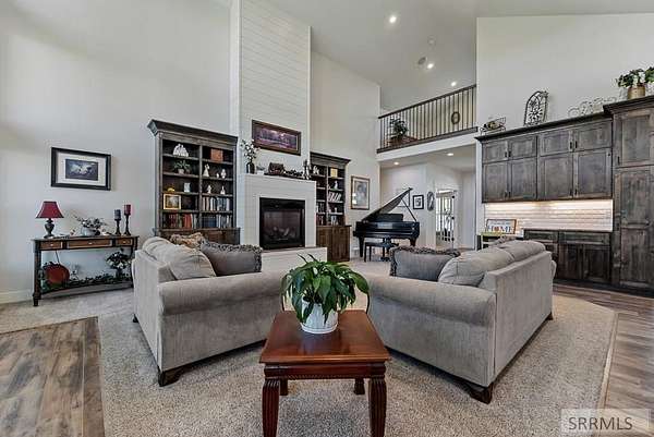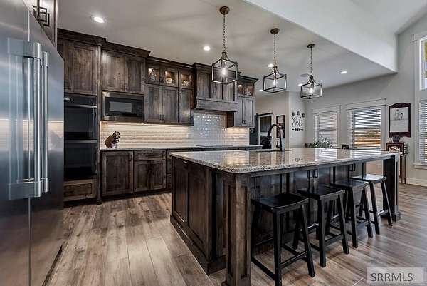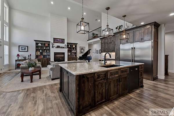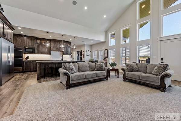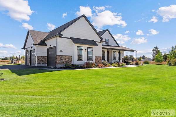 Welcome to this stunning custom home on 5 acres in Rigby-designed for comfort, beauty, and unforgettable gatherings. With 4 spacious bedrooms, 3 bathrooms, an office, and an enormous deck overlooking the beautifully landscaped property, this home offers the perfect blend of function and luxury. The heart of the home is a chef's kitchen featuring custom cabinetry, a massive granite island, and elegant finishes ideal for entertaining. The great room showcases soaring windows and a floor-to-ceiling fireplace, filling the space with natural light and warmth. The master retreat is a peaceful haven with vaulted ceilings, private deck access, and a spa-inspired ensuite featuring a soaking tub and walk-in shower. Downstairs, you'll find expansive living areas, a built-in playhouse, and an oversized cold-storage room ready for all your needs. With meticulous craftsmanship, open-concept living, and breathtaking outdoor spaces, this property captures the best of Idaho living-quiet, private, and absolutely beautiful.