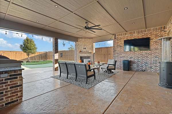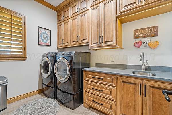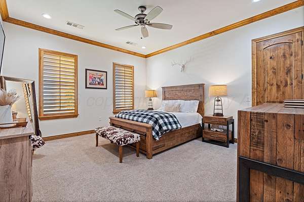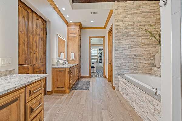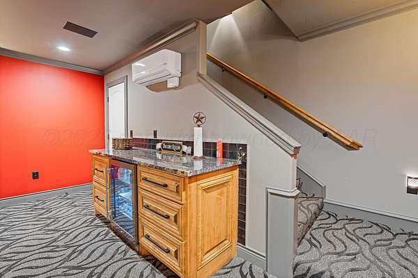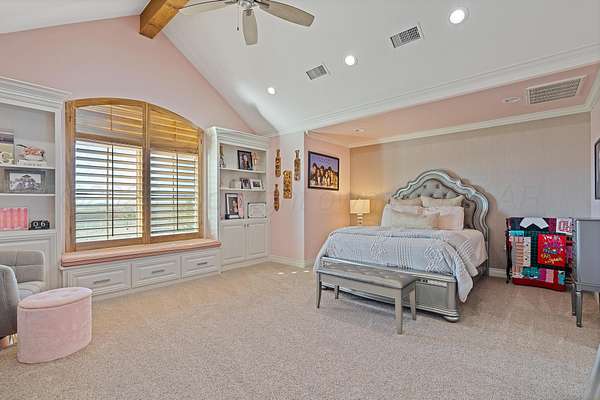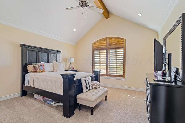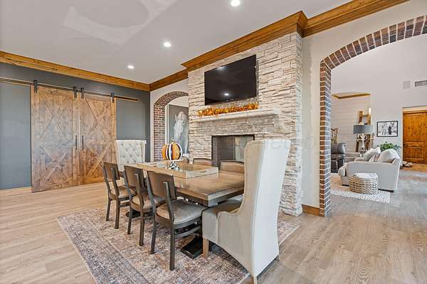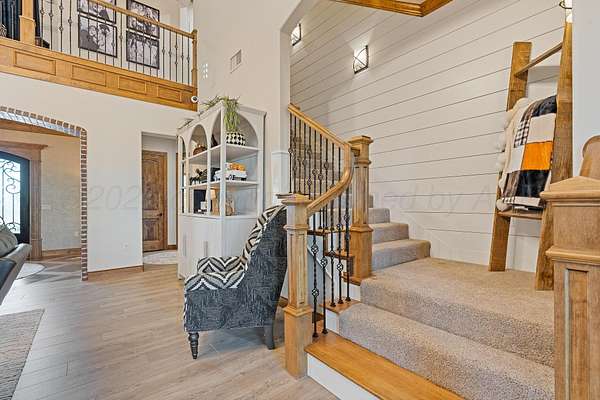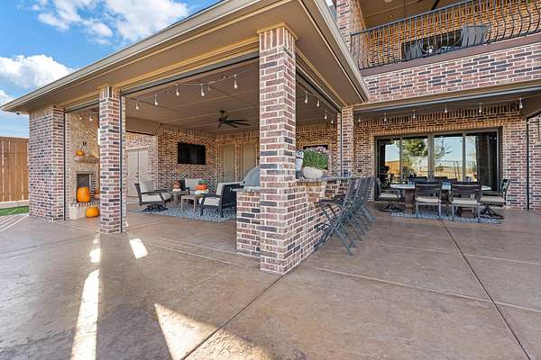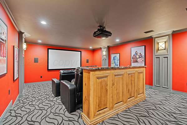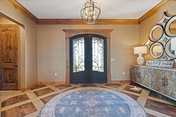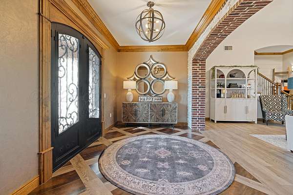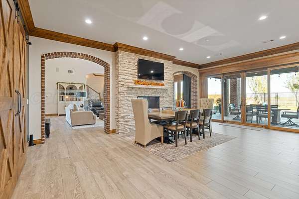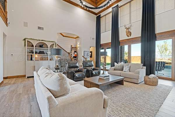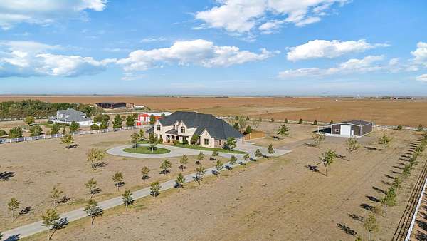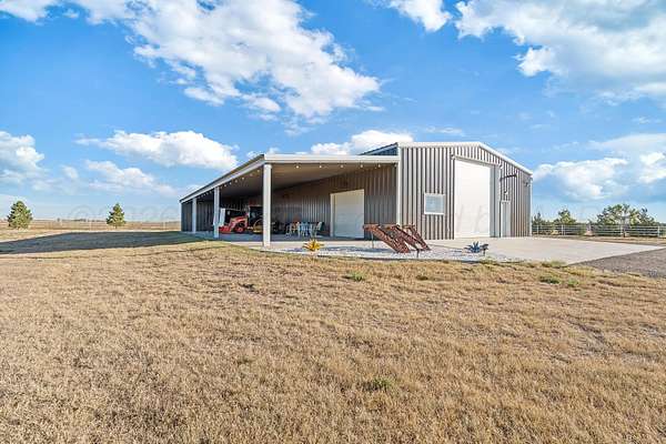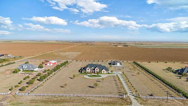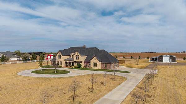 Tucked just outside Hereford, this exceptional custom-built estate offers a rare blend of refined luxury and wide-open freedom on just over 6 meticulously maintained acres with Pipe Fencing. Designed with both beauty and functionality in mind, the property is a true oasis--featuring 122 established trees, each individually supported by a drip irrigation system, and year-round vibrancy due to the property being almost entirely irrigated. The home itself showcases thoughtful craftsmanship and elevated finishes throughout, creating a warm yet sophisticated atmosphere. Generous living spaces, abundant natural light, and carefully curated details make every room feel both inviting and impressive--perfect for entertaining or quiet everyday living. The primary suite, 2nd bedroom suite, and office are on the first floor along with the double sided fireplace that features an eat in kitchen, massive island and butlers pantry. The kitchen is stunning with stained and painted cabinetry, a 5 burner gas cook top with griddle, a chefs double oven, built in microwave and dishwasher and a bar area with a mini beverage/snack fridge. Upper and under counter lighting helps show off the immaculate kitchen. The utility room features built ins and storage. The 3 Car garage will fit large vehicles with ease, has insulated garage panels an automated lift up the attic that will make life easy for storage aficionado! Spray foam will keep you cool in the summer and warm in the winter! Down the stairs the theater room is stocked with the latest in audio-visual equipment to create the best in the Home Theater Experience. There is a built in counter space for serving with a built in beverage fridge and bar top. Upstairs you will find Bedroom 3 and 4 with their own bathrooms and walk in closets. There is an additional living space/gameroom/playroom that has an outdoor decked area for the best views of the backyard! The backyard is private and fully fenced with concrete footing. The outdoor space was carefully designed to incorporate all outdoor activities. There is a fully equipped outdoor kitchen area with gas, an outdoor living space with fireplace and dine-out space and a half bath for those enjoying the pool, hot tub and outdoor activities. There is a high-tech sophisticated main control panel that operates the systems including humidifier zones and security through the home. Use the app to heat the hot tub so you can pull in the private drive and unwind in the evening! Every detail from finishes to furniture to have been selected with careful attention to detail. Step outside and experience what truly sets this property apart: a fully equipped shop 75x40 ready to accommodate livestock, hobbies, or recreational toys. Whether you're envisioning a small-scale ranch setup, a workshop, or simply extra storage for your lifestyle, this versatile space delivers. 3 overhead automatic doors, spray foam, horizontal radiant electric heaters, electrical throughout and a bathroom. Enjoy the expansive 75x20 covered side patio to sit and take in the famous West Texas Sunsets. With expansive views, established landscaping, and infrastructure already in place, this property offers the luxury of space without sacrificing comfort or convenience. A rare opportunity to own a private, well-appointed retreat in the Texas Panhandle--where elegance meets elbow room. Every corner reflects years of care and attention--now it's ready for a new story to begin. Schedule your private tour today.