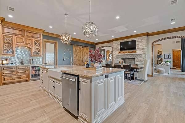 - Cooktop, Dishwasher, Disposal, Double Oven, Microwave, Range, Wine Refrigerator