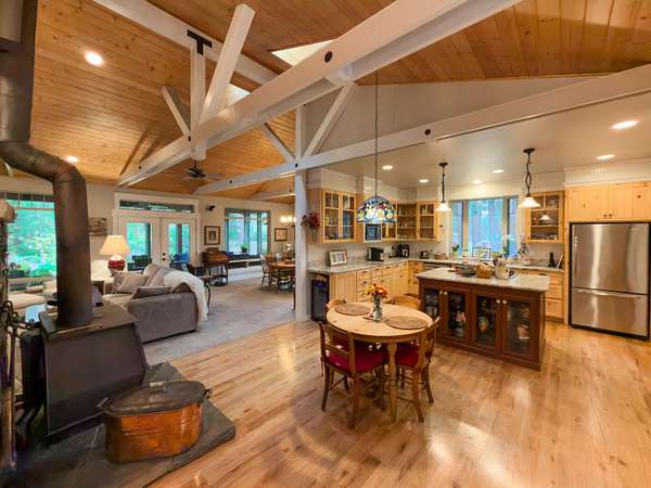 3-bedroom 2.5 bath on just under 6 acres! Nestled away in a gorgeous woodsy setting leads you to feel like you are miles away from civilization, however you are only about 10 minutes from town. Everything from the front door to the beautiful hardwood floors are well thought out and top of the line. This one is a must see in person to appreciate. Nice open floor plan with a one-of-a-kind screened in sunroom to sit back and watch the deer or listen to the water trickle down to the fishpond. Lots of extras like stained glass imported from England to the lights inside the kitchen island. All granite counters, glass faced wood cabinets that only add to the class of this home. Notice the 3-car garage and carport/lean-to and covered wood storage that could also be an additional workshop. Off to the side you will notice a cute little greenhouse and garden... there is enough space for it all! There are just to many ''extras'' to list them all.