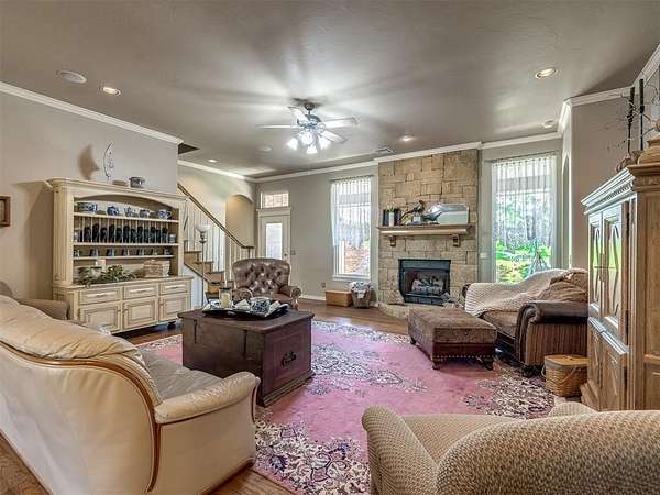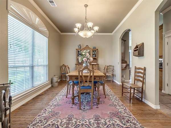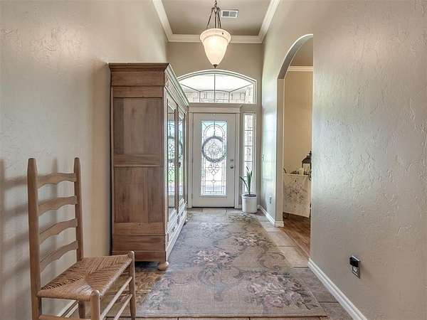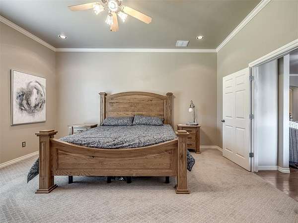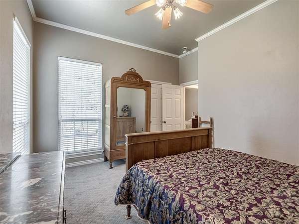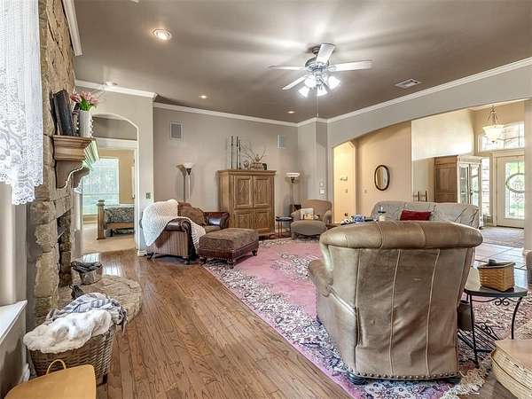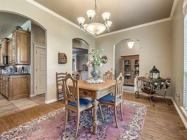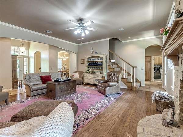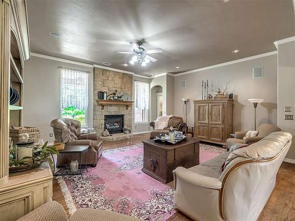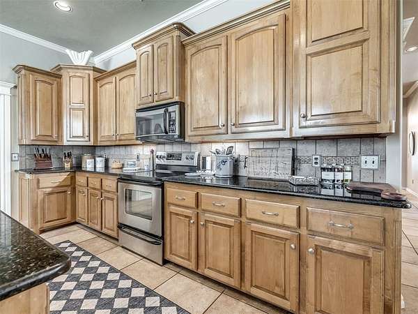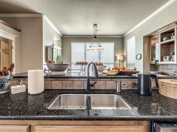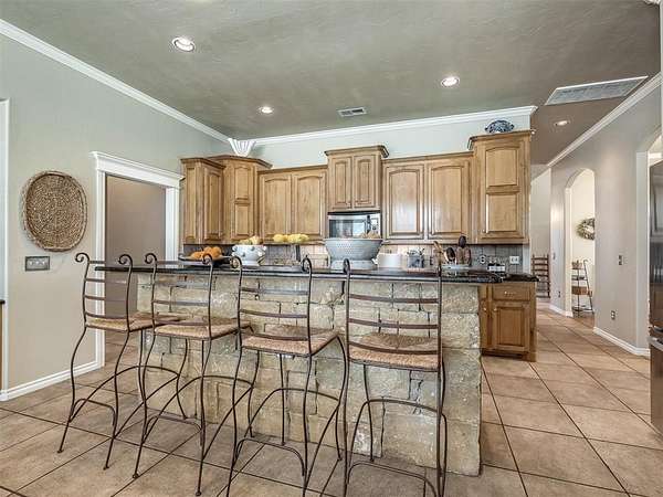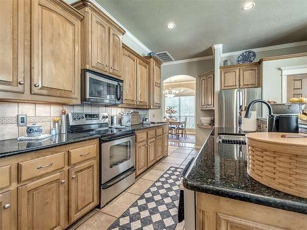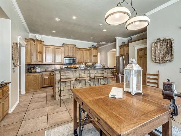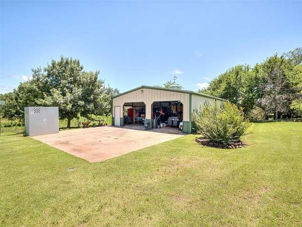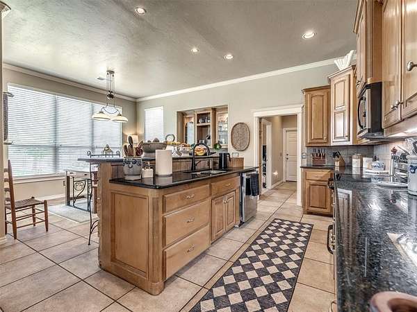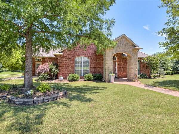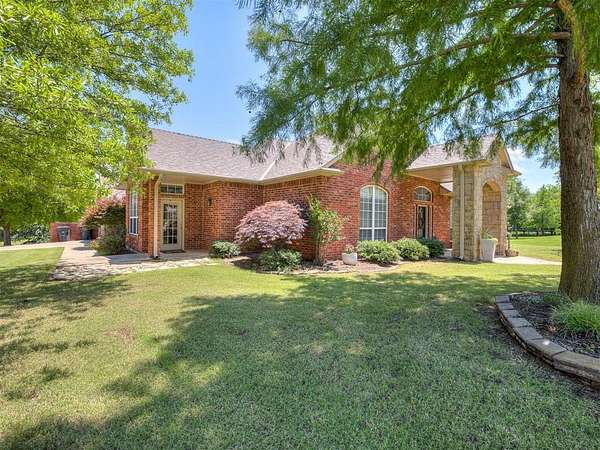 Discover a truly rare opportunity to enjoy the serenity of country living without sacrificing the convenience of city life. Nestled on a picturesque 5.5-acre lot, this custom-built estate offers the perfect blend of privacy, comfort, and accessibility -- all located just minutes from the vibrant Moore 19th Street shopping and dining district and the beautiful Belmar Golf Course. Boasting over 3,100 square feet of well-designed living space, this home features 3 generously sized bedrooms, 2 dining areas, a sprawling main living room, and an enormous bonus room with its own private bathroom -- ideal for a guest suite, game room, or home theater. Everywhere you turn, this property exudes thoughtful craftsmanship and timeless appeal. The chef's kitchen is adorned with sleek granite countertops, custom maple cabinets, a built-in china cabinet and hutch, and seamlessly flows into the tiled walkways that connect each living area with style and ease. Step outside and you'll find a spacious covered patio that overlooks your own private oasis -- a stocked pond and tree-lined creek that provide a stunning natural backdrop year-round. Additional highlights include a 30x40 workshop--perfect for hobbies, storage, or a home-based business, a high-impact, hail-resistant roof for long-term peace of mind, an in-ground sprinkler system to keep your expansive grounds lush and green, and full city utilities. Whether you're sipping your morning coffee on the patio, fishing in the pond at sunset, or simply enjoying the open sky and gentle breeze, this property offers a lifestyle that's hard to match. Located in the highly sought-after Moore School District, this home combines the best of all worlds -- country charm, city convenience, and room to roam. Opportunities like this don't come along often. Schedule your private showing today and come experience the best of both worlds -- space, serenity, and style, right in town.