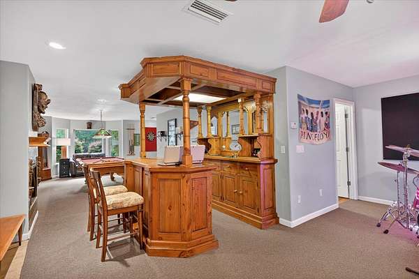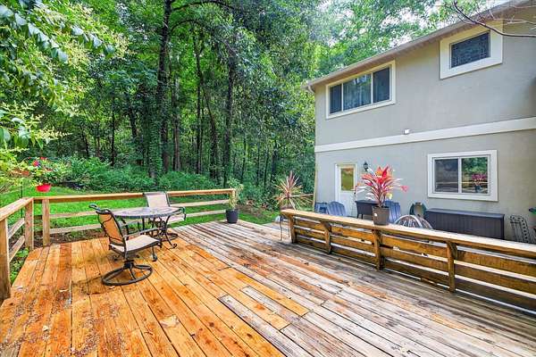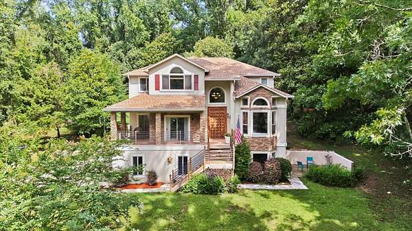 Welcome to your dream home! This stunning 3-story, 3675 sf residence sits on a private and beautifully wooded 1.82 acre lot, combining classic craftsmanship with modern comfort. Constructed with enduring stone and stucco, this home's curb appeal is immediately elevated by hand carved wooden front doors that set the tone for the artistry within. Inside you will find 3 gas fireplaces and architectural charm throughout - including stain glass windows and ample wall space to display artwork and family photos. The spacious master suite offers a steam shower and huge walk-in closet as well as a bird's eye view of the lush lot. Entertainment is effortless in the lower-level English pub, complete with a custom wet bar providing the perfect space for hosting or relaxing in style. Outdoor living shines with covered porches, a screened-in porch and an open deck, all designed to maximize your enjoyment of the tranquil setting. Don't miss this rate opportunity to own a one-of-a-kind home that blends handcrafted detail, functional elegance and plenty of space to breathe - inside and out.