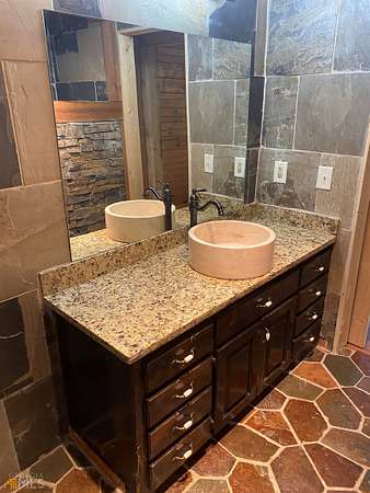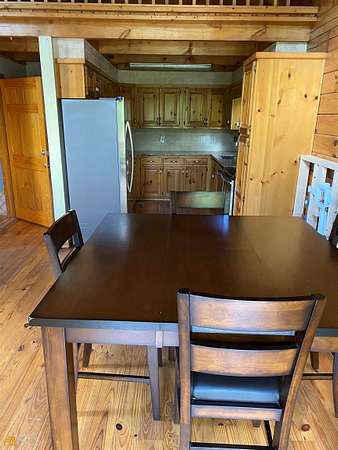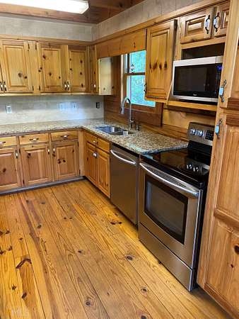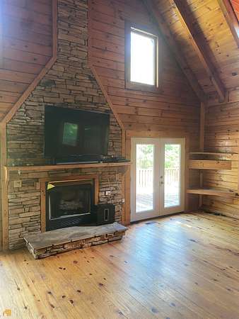 Rare opportunity and good investment!!! Log home on 5 level acres with finished terrace level featuring upgrades thru-out. Owner has soil test and permit allowing you to build an additional home. Finished terrace level with kitchen, laundry connection, full bath, bedroom and family room. Upgrades continue thru out the main level. Main level: As you enter the family room from the large front porch you will be impressed by the 2 story beamed ceiling and massive floor to ceiling rock fireplace which can be enjoyed and viewed from the kitchen and dining area. 2 bedrooms, 2 bath's, laundry room. Both units have long term tenants. Please don not drive down the driveway without having an appointment confirmed by the agent. Seller would look at offers to sell home with 1 acre Photo's was taken prior to tenants occupying home. HOMES MONITORED BY CAMERAS