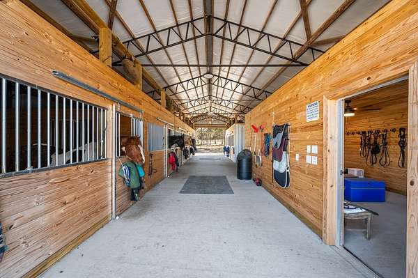 Equestrian features: newer 100x205 riding arena, insulated barn with 7 stalls, tack room with running water, 6 pastures, and 4 run in sheds. Back road on the property is ideal for trail riding. Unrestricted land--bring horses, trailers, and equipment with freedom to use the property your way.