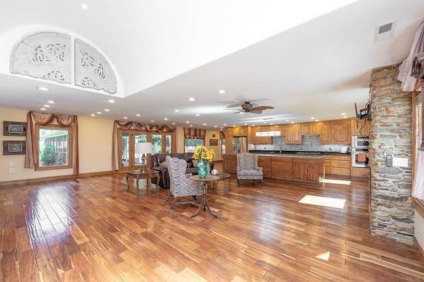 - 2 Story Foyer, Attic Stairs-Disappearing, Cable Available, Ceiling Fan, Ceilings-Cathedral/Raised, Ceilings-Smooth, Ceilings-Some 9 FT +, Ceilings-Trey, Countertops-Solid Surface, Disability Access, Fireplace, Gas Logs, Jetted Tub, Open Floor Plan, Sauna, Second Living Quarters, Smoke Detector, Walk in Closet, Window TRMNTS-Some Remain