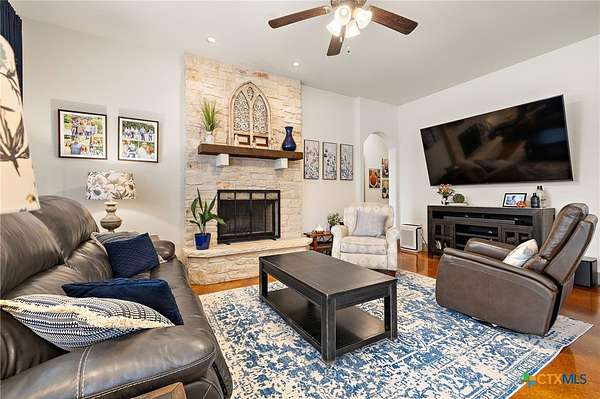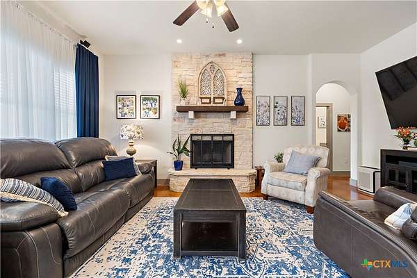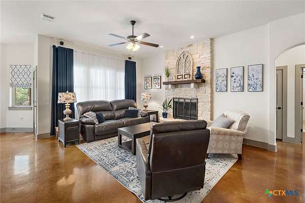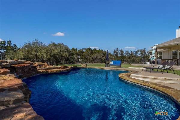 Nestled on just over 2 acres. Chickens and farm animals allowed. Beautiful home with high ceilings and open concept. Open living rooms boost stone fireplace. Large dining room, open concept kitchen with defined spaces. Breakfast nook with beautiful view of backyard pool and green space. Private backyard with spacious cover back patio, pool with rock waterfall and fire-pit. This is a dream backyard. Large shed with electric for extra storage space. Home is set with generator to convey with the property. Primary bedroom with high ceilings and view of pool and green space. Large walk in closet and on-suite bathroom. Oversized soaker tub and walk-in shower make this bathroom a dream. 3 large secondary bedrooms. No carpet int his home. Home has so much to offer with a low tax rate!!! Must see property!!!