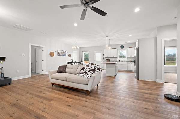 Welcome to 351 Down Creek Rd, a newer home built in 2024! It offers one-level living in a peaceful country setting. Situated on over 4.5 acres of beautiful, open land, this 3 bedroom, 2 bath home features an inviting open floor plan designed for comfort and everyday living. The kitchen showcases granite countertops and soft-close cabinets and flows seamlessly into the living and dining areas. The home offers plenty of storage areas such as the kitchen and utility closet in the laundry room. This home is perfect for entertaining or relaxing. The primary suite offers a private full bath with luxury vinyl plank flooring and a large walk in closet. Plush carpet is thoughtfully used in the bedrooms and each bedroom boasts a generous closet. The fenced back yard has a view of a pond and makes a great play area for children and pets. Ready for you to move in and make your own!