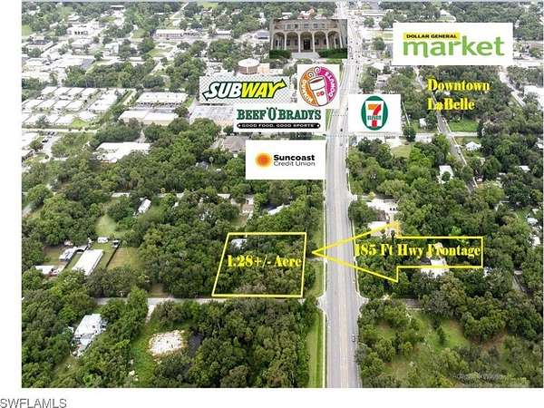 Est $5,368/moLocated in the heart of LaBelle and busy SR 80 (which connects Florida's West & East Coasts)! This 1.27+/- acre property has street access on two sides, and access to city utilities. Current zoning allows for offices, retail, restaurants etc! With 184+/- feet of frontage on busy 4 laned State Road 80, and located in the heart of town, and the rapidly growing Port LaBelle Community, this property is prime for development! There is also an older Cracker house on the property that could be possibly renovated into office or retail space, or demolished and build whatever you want! LaBelle commercial land, especially within the growing city is rare.
