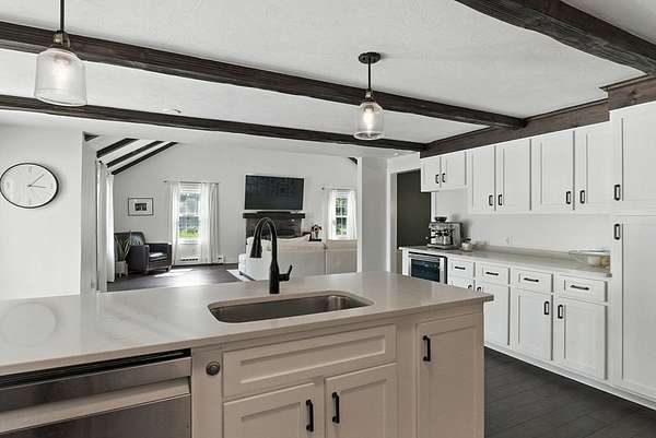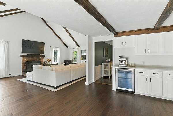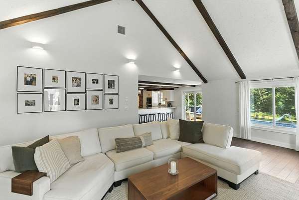 Set on a beautifully landscaped 2.19ac lot w/resort style backyard, this impeccable home is filled w/natural light & thoughtfully updated throughout. An open floor plan showcases a cathedral family rm w/FP & stunning updated kitchen w/SS appls, new cab doors & quartz counters. Elegant dining rm., large foyer & front-to-back living rm w/charming FP. 2nd level boasts a primary suite w/cozy FP, gorgeous hardwds, custom walk-in closet & spa-like bath. 3 add'l bedrms offer hardwds & a beautiful renovated main bath. Enjoy over $150K in updates since 2021 ~ 3 new baths, new flooring, kitchen slider/ FR windows, HVAC, A/C, hot water heater, driveway, trex deck, pool equip & more. The home's inviting interior extends seamlessly to an exceptional outdoor living experience ~ spectacular in-ground pool, patio, cabana, fire pit & pool shed w/elect. & refrig w/expansive, fenced yard w/privacy & space for play, pets & entertaining. Features ~ Gas & W/O bsmt. Move in ready for an amazing summer!