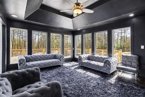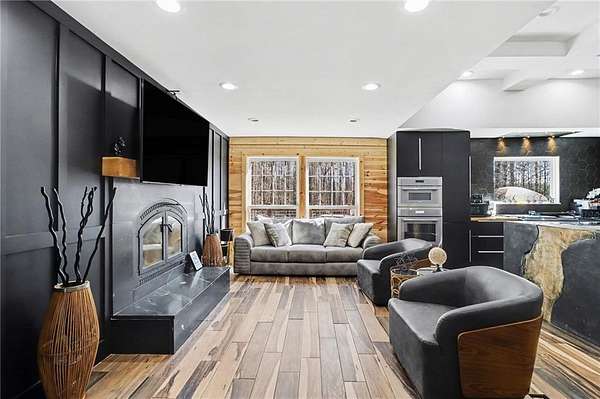 Exquisite Modern Luxury Farmhouse on 5 Private Acres Tucked away on 5 private acres, this custom-designed modern farmhouse offers a rare blend of elevated design, peaceful seclusion, and effortless indoor-outdoor living. From the moment you arrive, the home makes a lasting impression with its expansive wraparound deck and inviting front porch-perfect for entertaining or simply enjoying the quiet beauty of the surrounding landscape. Inside, natural light pours into a thoughtfully designed open-concept layout, where dramatic ceilings and clean architectural lines create a sense of space and sophistication. A stunning window-lined lounge/sunroom serves as the heart of the home, offering panoramic views and a serene retreat that feels both luxurious and relaxing. The chef's kitchen is a true centerpiece, featuring a custom concrete cascade island and a full suite of premium Thermador appliances, including a six-burner range with integrated grill, double ovens, additional wall oven, built-in microwave, wine bar, and dedicated ice maker-designed for both everyday living and elevated entertaining. The main living area is warm and inviting, anchored by a wood-burning fireplace that adds character and charm. Upstairs, rich hardwood flooring flows throughout, leading to a luxurious primary suite complete with soaring ceilings, a spacious sitting area, and abundant natural light. A second primary suite offers its own private fireplace, making it an ideal guest retreat or multi-generational living space. The spa-inspired primary bath is designed for true relaxation, featuring an oversized double shower with body jets, a deep soaking tub, and refined finishes throughout. A generously sized loft provides incredible flexibility, already framed and pre-plumbed for a future bathroom-perfect for a private suite, home office, or additional living space. Major system updates-including plumbing, electrical, HVAC, and a roof installed in 2020-offer peace of mind and modern efficiency. For those seeking even more space and opportunity, an additional 28-acre adjacent property (FMLS #7712393) is available, featuring a home, barn, and separate living quarters. Seller is offering a $100,000 incentive when purchased together. This is more than a home-it's a private retreat designed for comfort, style, and possibility.