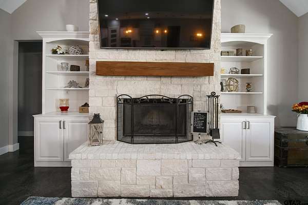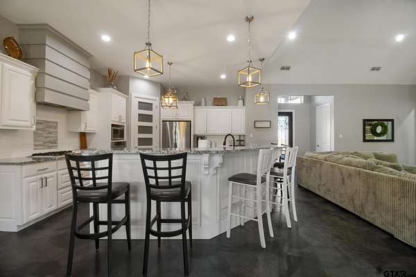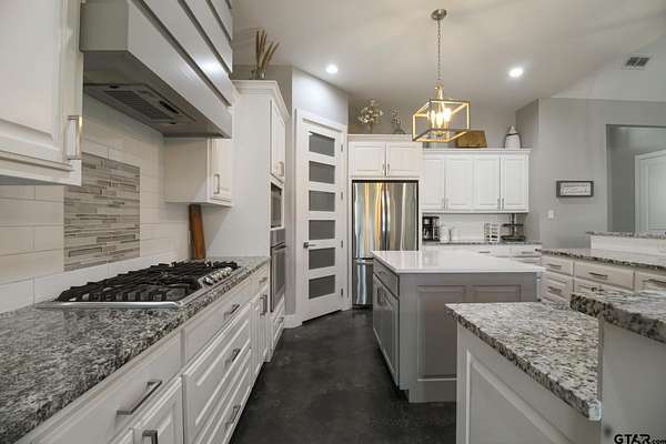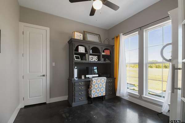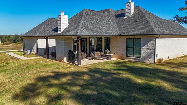Welcome to a stunning 2021 custom home on 3.34 private acres, blending craftsmanship, comfort, and privacy. This 3-bedroom, 2.5-bath home includes a dedicated office and an open-concept layout filled with high-end finishes. You'll love the custom flooring, designer countertops, and grand kitchen with a large pantry, gas stove, and spacious island that opens to the living area. The living room features a beautiful fireplace with a handcrafted mantel and peaceful views of the backyard. The primary suite offers a spa-style bath that's truly to die for, while a Jack-and-Jill connects the secondary bedrooms for added convenience. Step outside to the large covered back porch with its own fireplace and plenty of room for multiple seating areas. With no homes built beside you and land stretching all the way to the road, this home offers the perfect balance of country privacy and modern luxury.
