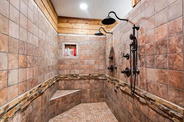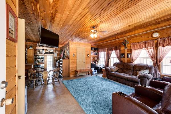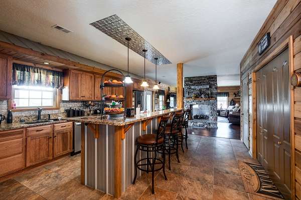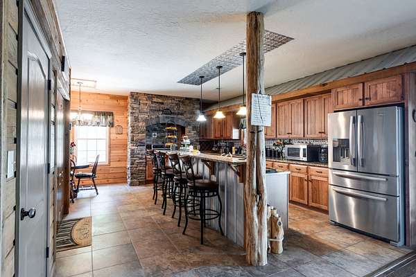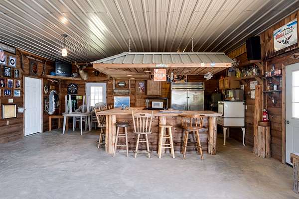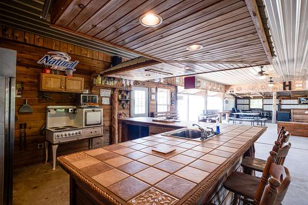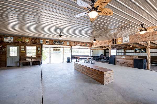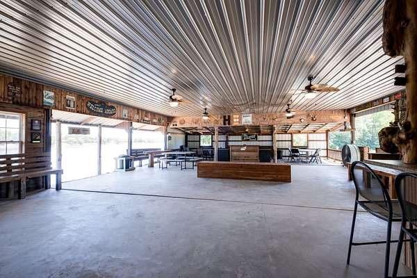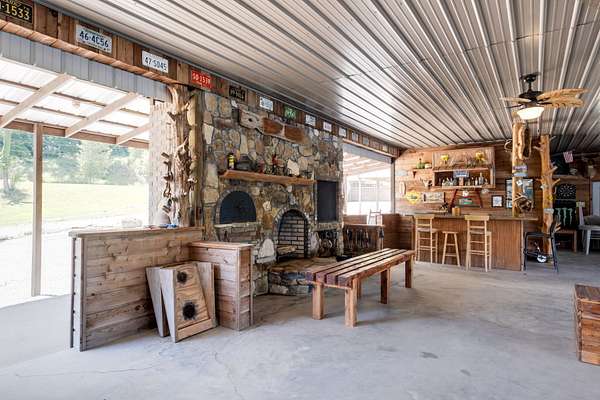Just up from the inlet, you'll discover a large pavilion with approximately 3,300 square feet under the roof, complete with a bath, refrigerator, and a stone pizza oven, grill, and fireplace all in one. The owner hosts private parties here, and occasionally, a country music singer from Nashville performs for guests.