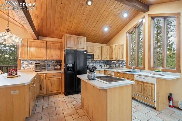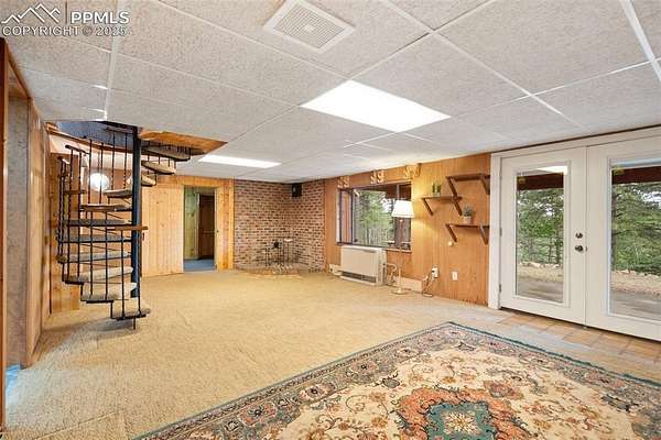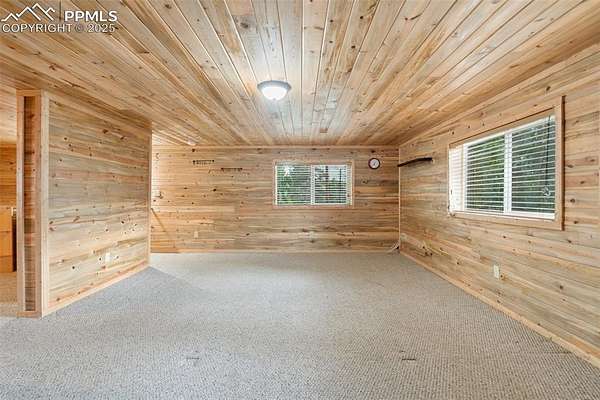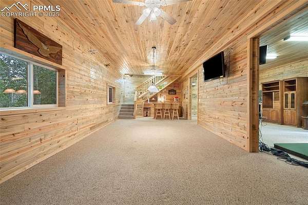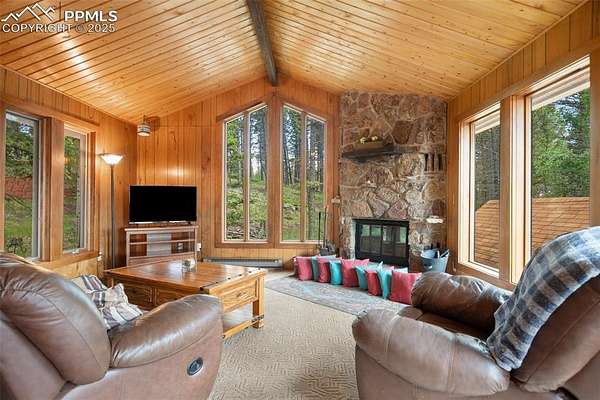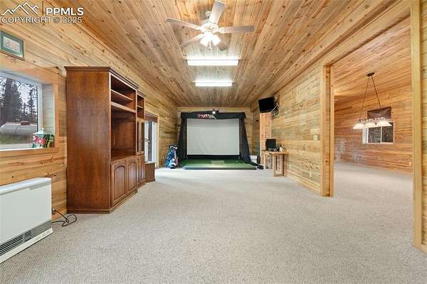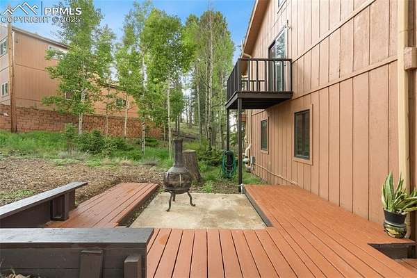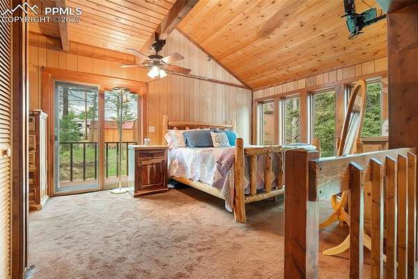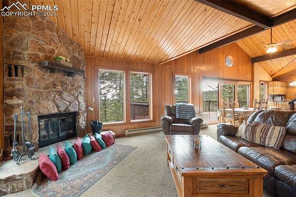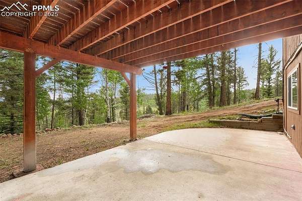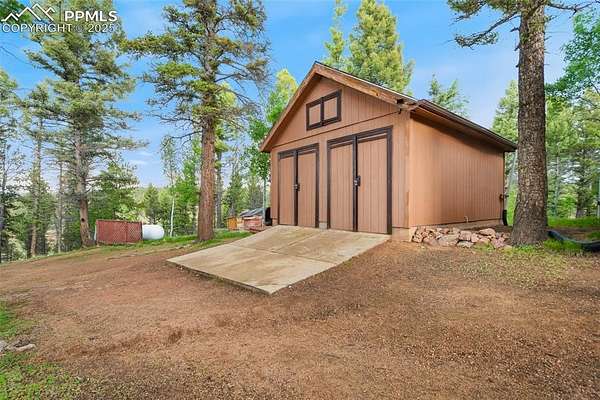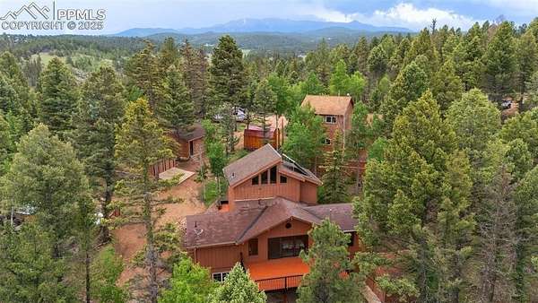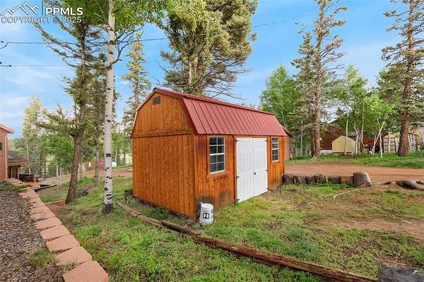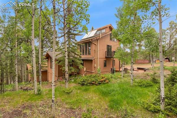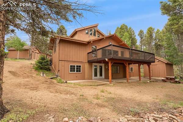 Colorado Mountain Sanctuary with Room to Roam, Relax and Recharge! Multiple outbuildings make this property a hobbyist's dream. The Main Home is 2,305 sq.ft. and includes 4 bedrooms, 3 baths and 2 kitchens, with potential for a multi-generational household. Character abounds with the beautiful tongue-n-groove wood ceilings, moss rock fireplace and spiral staircase. Surrounded by nature, the scent of the pines will draw you in while the home itself is light and bright with tall windows, skylights and vaulted ceilings. The main level Kitchen features upgraded hickory cabinetry, newer farmhouse-style sink and upgraded glass tile backsplash. The dining area leads out to a huge deck, perfect for entertaining or enjoying the privacy of the secluded backyard. Additional features include woodburning fireplace for cozying up on a cold night, walkout basement with large patio, upper level Master Suite with private balcony and hidden loft, 5-piece master bath with upgraded shower & double vanity, 2nd kitchen in basement for guest suite or in-law quarters, RV parking pad and dedicated firepit area. In addition to the main home, the "Man (or Woman) Cave" gives you an extra 1,642 sq.ft. of heated living space, featuring two 39x14 sq.ft. main level Rec Rooms, one with golf simulator and one with dry bar and light fixture for future pool table, plus upper level office (15x14) with built-in shelves, perfect for collection display or library, and bonus room (19x14). For energy-efficiency, the home and large outbuilding are both heated with Rinnai heat (propane), and master suite water is heated with solar. Other outbuildings include 2-car garage (22x22), 2-stall barn (20x16) w/concrete floor and loft, storage shed (12x10) w/workbench, & art studio shed (15x9). New roofs and skylights being installed. All this on 3.41 acres, horses allowed, on a county-maintained road. Just 4 miles from Divide with stores and other amenities. Bring your personal touches to make this home yours!