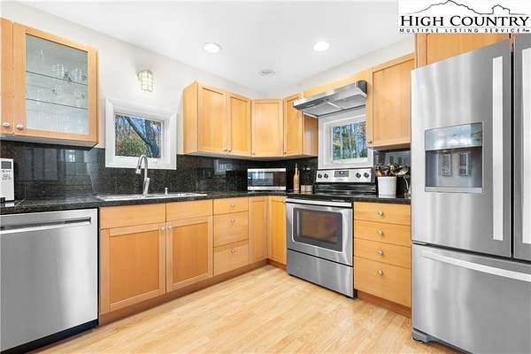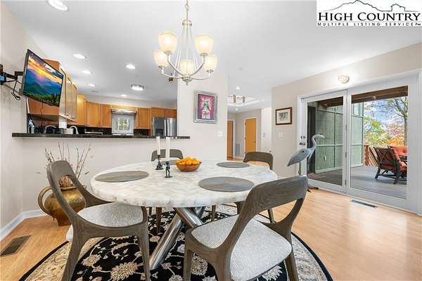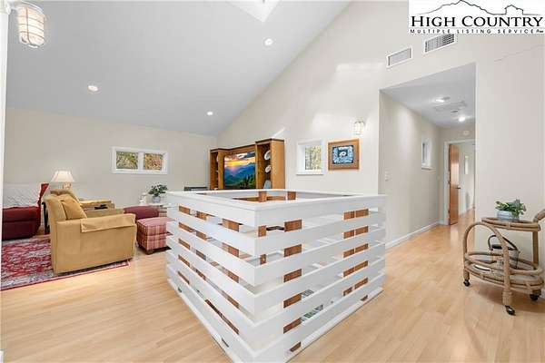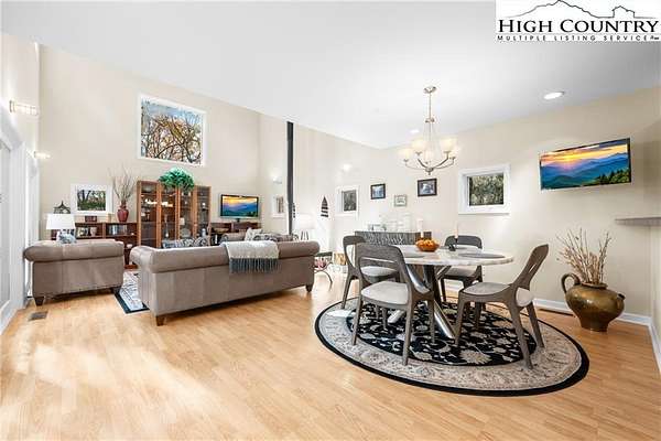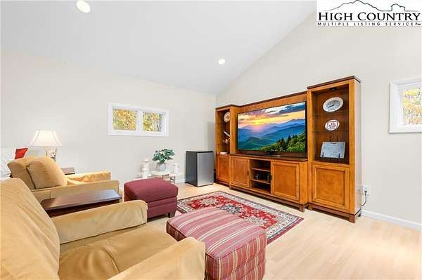 From the moment you arrive, you'll sense the difference in the craftsmanship, the care, the quiet hum of nature all around. Step inside and you're greeted with warm, inviting spaces designed for both relaxation and gathering. The open-concept great room draws your eyes to the natural beauty outside with tall windows framing the woods beyond, and seasonal glimpses of distant ridgelines. As daylight fades and evening settles in, the glow of the Beech Mountain ski slopes twinkles on the horizon in the winter, creating a scene that feels almost magical.