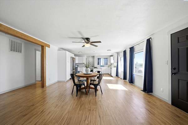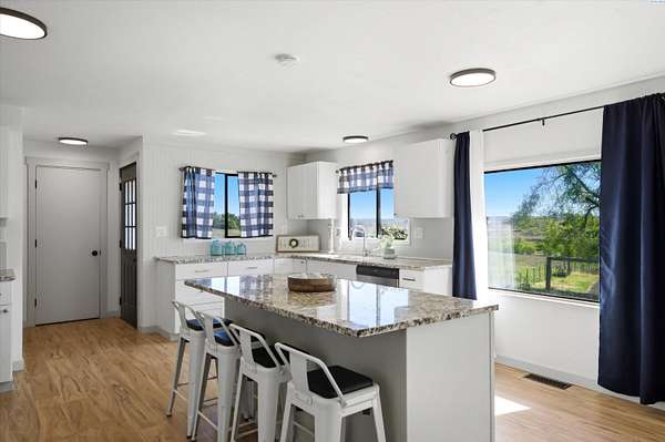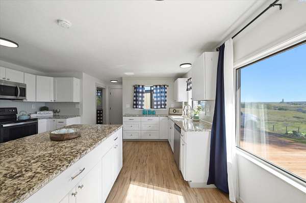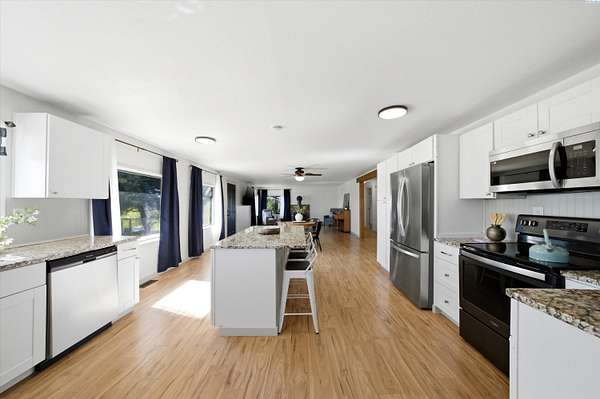 MLS# 292446 Bring your country living dreams to life on this stunning 8.57-acre property at 351 Eltopia West Rd! This charming 1976 rambler offers 3 bedrooms and 2 bathrooms, blending classic farmhouse warmth with a comfortable, open-concept layout. The spacious kitchen flows seamlessly into the main living areas, while expansive windows frame breathtaking panoramic views of the surrounding countryside.Thoughtful updates enhance everyday living, including newer laminate flooring, a functional and spacious laundry mudroom. Enjoy peace of mind with major improvements already completed: new front porch decking, a septic system installed in 2023, a new AC and heat pump added in 2024, and a brand-new roof installed in April 2026!Step outside to explore the true potential of this remarkable property. The 8.10 acres are fully irrigated acres are ready for your vision-whether it's livestock, crops, a hobby farm, or a blooming flower operation. The land is fully fenced and well-equipped, featuring a spacious hay barn with a loft ideal for storage, feed, or equipment.Tucked into a serene rural setting with private driveway access, this property offers the best of both worlds— peaceful country living just minutes from highway access and a short drive to Pasco. Whether you're looking to homestead, expand your agricultural pursuits, or simply enjoy wide-open space, this property is ready to make it happen.Experience farmhouse living-schedule your private tour today!