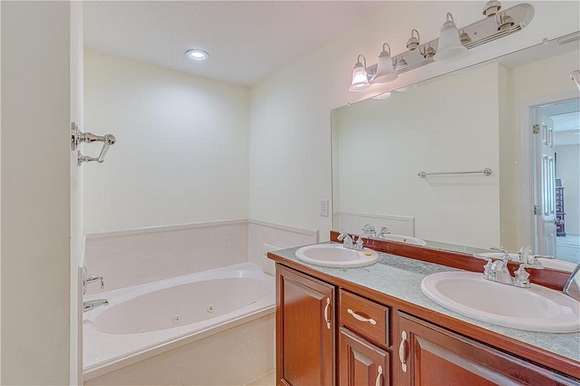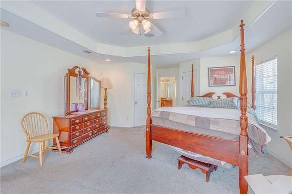 The home is just over 2000 sq ft. It has a split bedroom floor plan, open concept living areas. The primary bedroom has double walk-in closets. The primary bathroom features a jetted garden tub, walk-in shower and a double vanity. The home also has a side entry double garage.