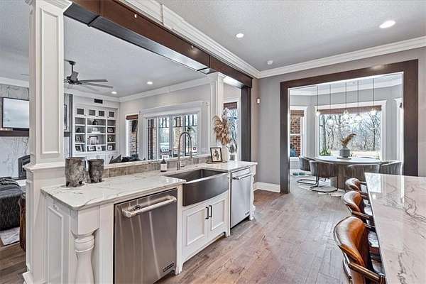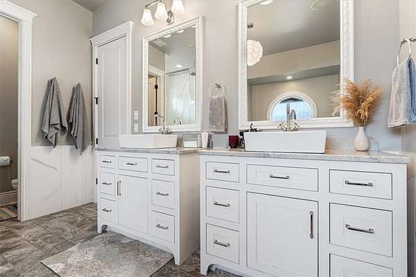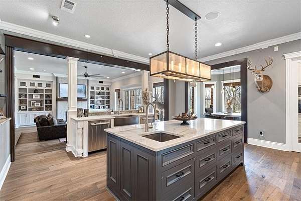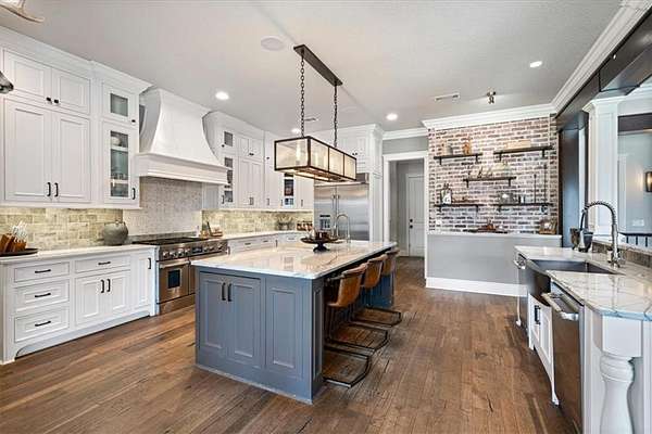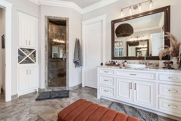 Perfectly situated on 3.55 private acres, this masterpiece blends modern luxury with thoughtful design. From the moment you arrive, the stunning architecture, new roof & manicured grounds set the tone for an extraordinary living experience. Inside are 6 bedrooms, 4 full & 2 half bathrooms, offering comfort & privacy for family & guests. The open-concept living spaces are anchored by high-end finishes, soaring ceilings & abundant natural light. A glass-enclosed beverage display adds sophistication to your entertaining space, while the movie theatre promises endless cinematic enjoyment. Functionality meets peace of mind with a built-in storm shelter, dedicated dog run & an impressive detached home gym for private workouts. Every detail is crafted for convenience & lifestyle—whether hosting gatherings, working from home or simply relaxing in your retreat. More than a home, it’s a statement of luxury, privacy & refined living in one of the area’s most sought-after neighborhoods. New pool coming soon! Be sure to ask!