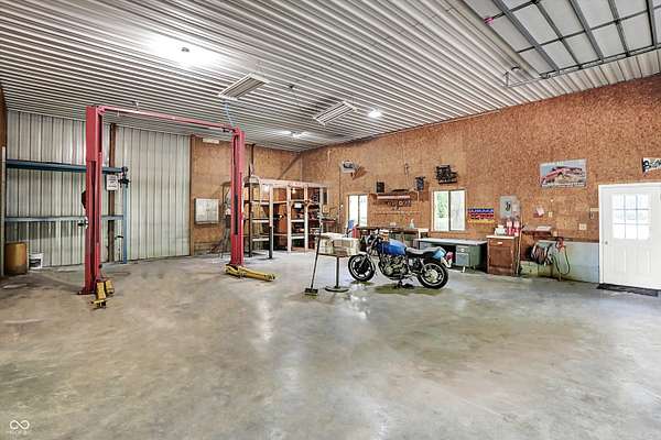 Custom Brick Home on Over 2 Acres with Massive Pole Barn! Nestled on just over two acres, this quality custom-built brick home offers the perfect balance of privacy and convenience-just minutes from shopping, dining, and entertainment. Boasting 3 bedrooms, 2 full bathrooms, 2 half bathrooms, and a finished basement, there's space for everyone and everything. Step into the cozy living room featuring a beautiful stone fireplace and brand-new carpet, seamlessly connected to the open-concept kitchen and dining area-ideal for entertaining. The kitchen includes an abundant cabinetry, a large island, and tile countertops. The primary suite offers a private retreat with an en-suite bathroom, walk-in shower, and a spacious walk-in closet. Enjoy peaceful mornings in the sun porch or gather with friends and family around the second stone fireplace in the finished basement. Need more space? The home includes an unfinished attic bonus area with approximately 1,000 sq. ft.-perfect for future expansion, storage, or creative projects. For hobbyists and outdoor enthusiasts, the HUGE 104' x 42' pole barn is a dream come true! It includes a 30' x 40' workshop with 14-foot ceilings-ideal for RVs, boats, jet skis, mowers, or any number of hobbies. Plus, there's an oversized attached 2-car garage with an additional 11' x 16' workspace. Surrounded by mature trees and wide-open space, this exceptional property offers peace and privacy without sacrificing access to modern amenities. Don't miss your chance to own this rare gem!