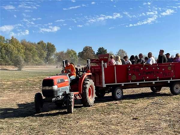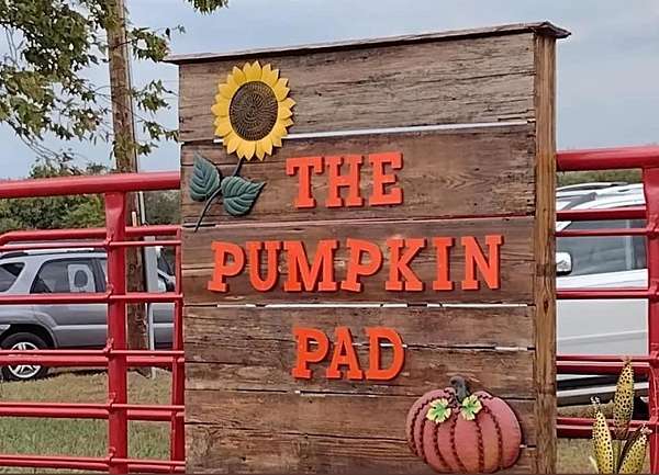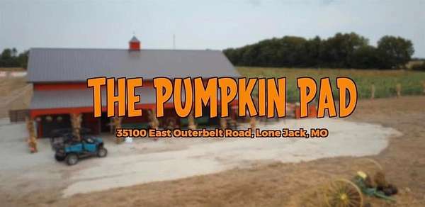 Take Lone Jack exit from US Hwy 50, head south on S Bynum Rd, At stop sign, turn west onto US hwy 150. The Pumpkin Pad is on the north side of the road about 0.3 miles. You'll see realtor sign and The Pumpkin Pad sign on gates.