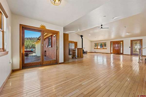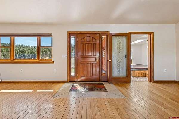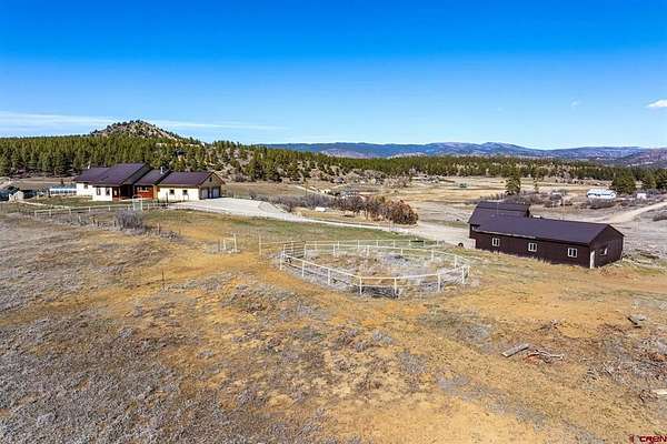 Rebecca Parnell, Bayfield Realty, C: 970-799-6556, Rebecca@BayfieldRealty.com, www.crenmls.com: Set on nearly 40 private acres bordering expansive public land, this exceptional 4-bedroom property offers the perfect blend of functionality and Colorado beauty. A gated entrance with automatic access ensures privacy and security as you arrive at this one-of-a-kind property. Inside, the home welcomes you with vaulted ceilings, rich hardwood floors, and abundant windows thoughtfully positioned to capture breathtaking mountain and valley views from nearly every angle. Comfort meets efficiency with in-floor radiant heat, while brand-new carpet in two of the bedrooms adds a fresh touch throughout. The open-concept layout connects the living, kitchen, and dining areas, creating an ideal space for entertaining, while expansive natural light enhances the warm and inviting atmosphere. The spacious primary suite features an ensuite bathroom with walk-in closet and double-headed shower for a true spa-like experience. Enjoy outdoor living from two spacious porches on either side of the home—perfect for relaxing, grilling, and taking in sweeping views of the valley and private pastures. Unwind year-round in the indoor hot tub/sunroom, perfectly positioned to take in the surrounding scenery. The fully renovated basement is a true showstopper, designed to resemble an authentic English pub—ideal for entertaining or relaxing in style. A stunning Murano glass chandelier graces the stairway, adding elegance and character. In the basement you will find the 4th bedroom, another bathroom, and two additional rooms complete with shelving that are perfect for storage.Outside, equestrian and hobby enthusiasts will appreciate the horse corral, barn/workshop, greenhouse, and a separate heated shop with 220 electric offering ample space for projects, storage, or equipment. You'll find the backyard equipped with extensive chicken infrastructure, including multiple well-built coops, secure fencing, and a dedicated “chicken playground” designed to keep birds safe, active, and productive. With unmatched views, direct access to public land, and a rare combination of luxury and acreage, this property delivers the ultimate Southwest Colorado lifestyle.