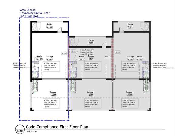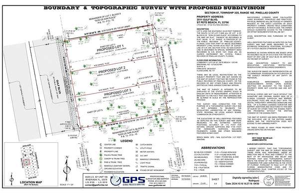 Introducing an exceptional, shovel-ready development opportunity directly on Gulf Blvd. in St. Pete Beach - one of Florida's most coveted coastal destinations. This expansive 10,000 sq. ft. lot (approx. 100 x 100) comes with fully permitted architectural plans to construct three high-end, multi-level townhomes, each designed with a coastal luxury aesthetic and modern functionality.