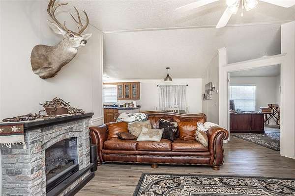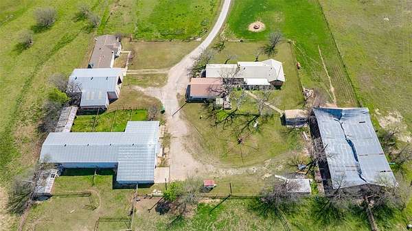 Improvements include an older brick home (no value assigned), a double wide manufactured home, an 18 stall horse barn, utility barn, and a pond. Structures provide flexibility for interim use, but the true value is in the land, location, and frontage.