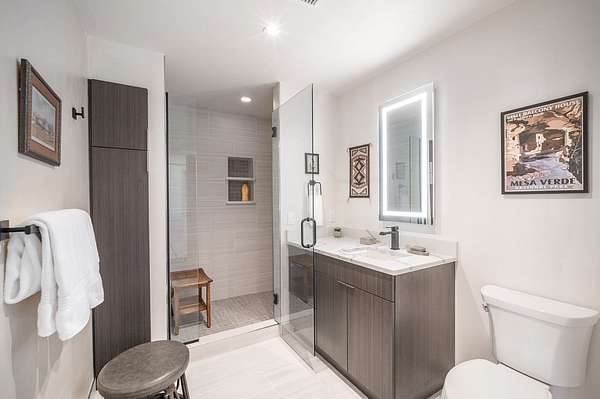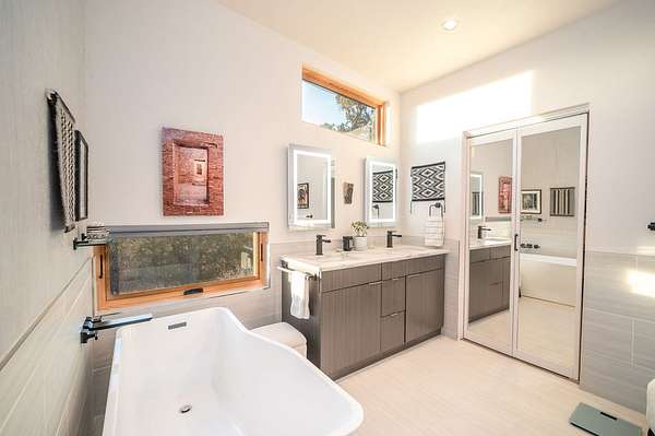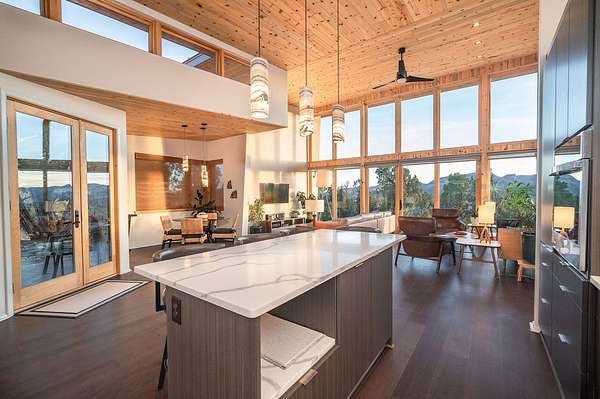Custom Home on Land in Mancos, COStep into pure magic at this 2 bedroom custom home on 10 secluded acres overlooking Mesa Verde National Park! Inspired by the dramatic setting, this modern design by Matt Clark of Clark and Chapin Architects is a true stunner! Flooded with natural light, this passive solar gem features engineered hickory floors, vaulted blue pine ceilings and 14' windows that provide astounding views of Mesa Verde National Park, Sleeping Ute Mountain and the Montezuma Valley. The open living, dining, and kitchen areas create a relaxing and spacious interior. The kitchen is sensational! A perfect balance of space and function with center island, bar seating, quartz countertops and Decor custom cabinetry. Features include Sub Zero Refrigerator/Freezer, Bosch Induction Cooktop, Miele Range Hood , Asko Dishwasher and GE Wall Oven. Elegant Onyx pendant lights and under cabinet lighting accent the atmosphere around the kitchen and nearby breakfast nook. Enjoy the expansive views from the roomy and relaxing living space with built-in JBL speakers and an easy step out thru the sliding glass door onto the patio. The large primary bedroom is private with a walk-in closet and private en suite bath. The primary bath has it all - double vanity with quartz countertops and fog free mirrors made comfortable with in floor heated porcelain tile, free standing tub, and shower with luxury shower panel. The 2nd bedroom is also large with easy access to the 2nd bathroom with shower, quartz countertop vanity and lighted fog free mirror. The beautiful multi textured exterior has two toned stucco, blue pine accent walls and edgestone rock blending perfectly with the high desert landscape. With durability in mind - the heavy gauged raised panel roofing has S-5 snow guards and is built to withstand Colorado winters. Beautifully landscaped, the drought tolerant shrubs and perennials are low maintenance and match the setting and home design perfectly. Being outside the home on the land is to further enjoy the wooded surroundings, privacy and mountain views. There's even a perfectly positioned bonfire pit overlooking the expansive valley and surrounding mountains. Great location just minutes to Cortez, Mancos, and Durango. This property is made for making memories and experiencing all the best of southwest Colorado!