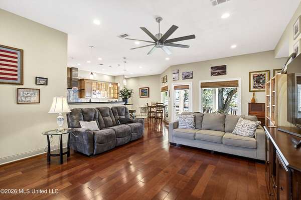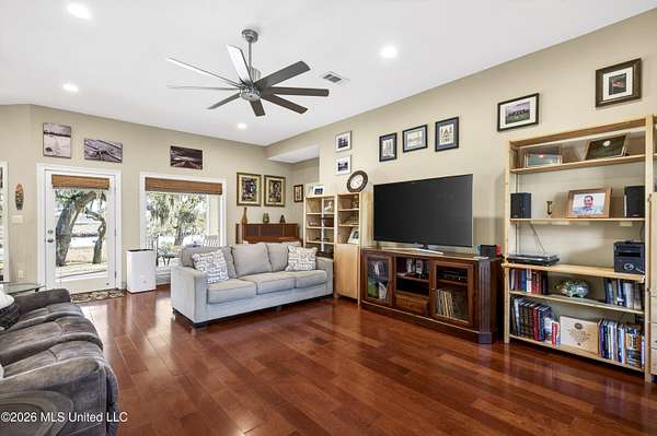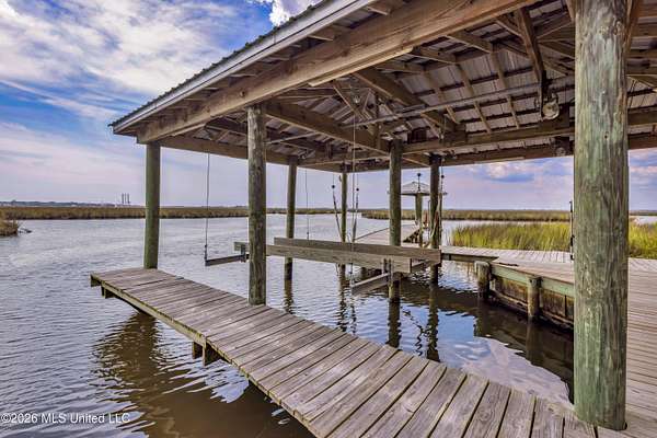 WATERFRONT LUXURY WITH MILLION-DOLLAR VIEWS--WITHOUT THE PRICE TAG Built in 2018 and strategically positioned on nearly 2 acres of pristine waterfront, this property delivers a rare combination of privacy, functionality, and unforgettable scenery. With approximately 297 feet of bulkheaded shoreline, two boat lifts, and extensive docking, this is a turnkey setup for serious water enthusiasts. From the moment you arrive, the setting separates itself--mature oak and magnolia trees draped in moss create a true Southern backdrop, while the home is perfectly placed to capture sweeping water views from nearly every angle. Inside, the home continues to outperform expectations. Featuring 3 bedrooms, 2.5 baths, and a versatile bonus room that can easily convert into a 4th bedroom, office, or private study, the layout is both functional and flexible. Custom cabinetry, hardwood flooring, and a thoughtfully designed floor plan elevate the overall finish, while large windows pull the outside in. Operational efficiency meets convenience with a spacious laundry room offering ample storage, plus a 2-car garage with an additional bay ideal for a golf cart or lawn equipment. On the rear elevation, custom hurricane shutters provide peace of mind without compromising the view--because the view is the asset. And it's a showstopper. The kind of waterfront exposure typically reserved for multi-million-dollar properties. Adding even more upside, the detached structure opens the door to multiple revenue or lifestyle plays--use it as a workshop, storage, guest quarters, or transform it into a full mother-in-law suite or income-producing apartment. With an existing enclosed room, loft space, sink, and additional features already in place, the framework is there. Bottom line: properties with this level of privacy, acreage, water frontage, and infrastructure rarely hit the market--especially at this price point. If you've been waiting for a waterfront opportunity that actually delivers on value, this is it.